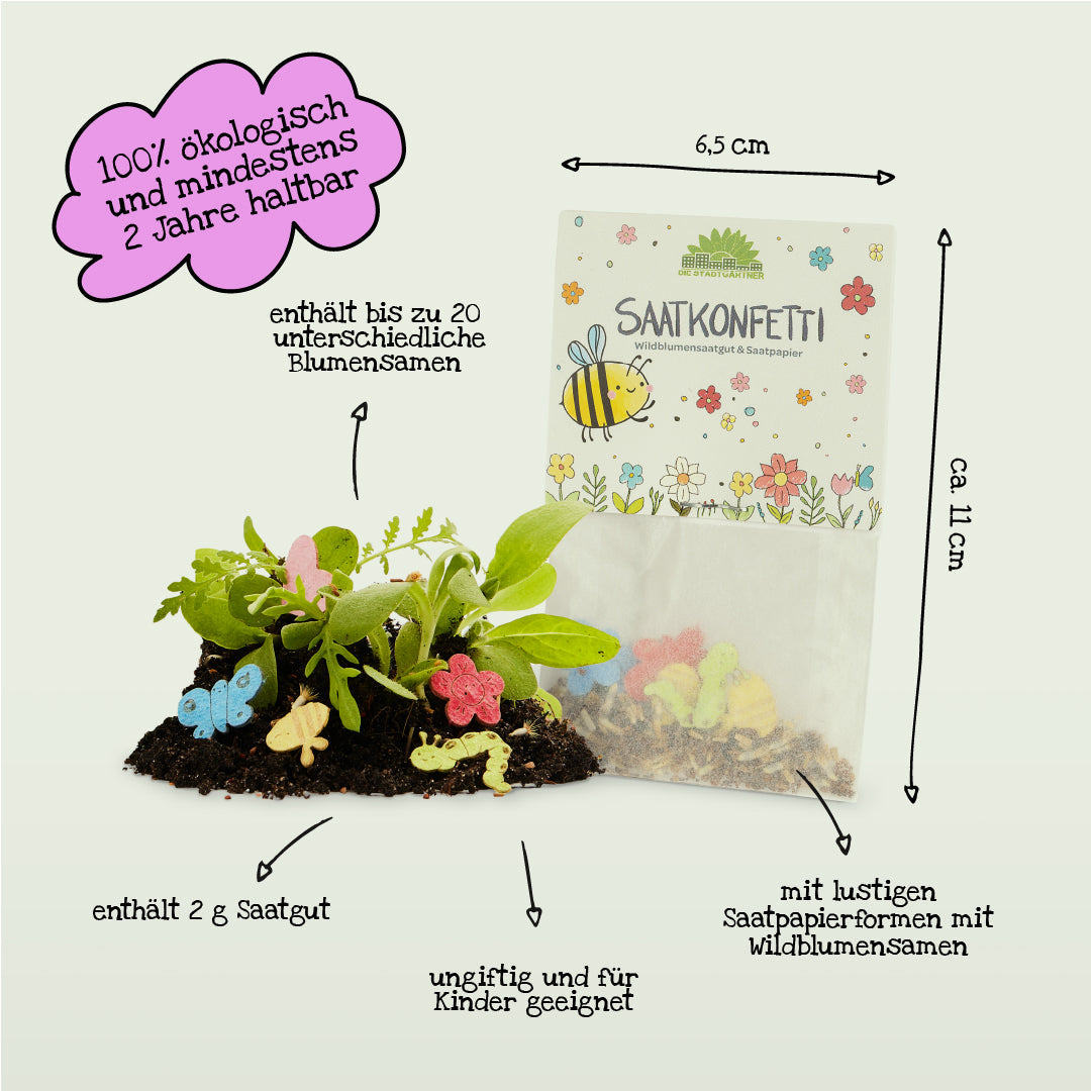 🎉 MITGEBSEL: Enthält 10 liebevoll gestaltete Tütchen mit einer bunten Mischung aus 2 Gramm ungiftigem Saatgut und 5 lustigen Saatpapierformen.... Lesen Sie mehr