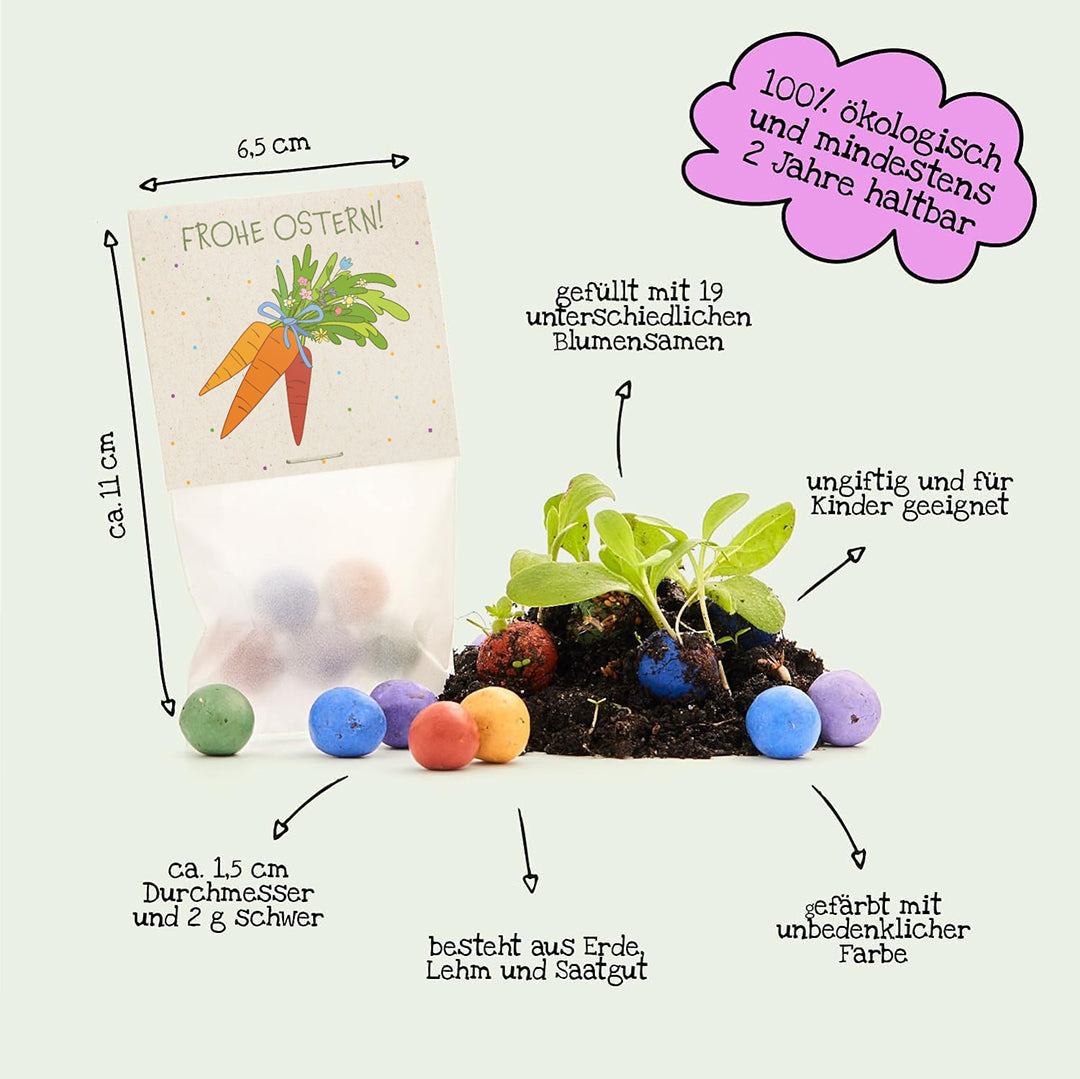 Kreatives Ostergeschenk: Enthält 10 im Osterdesign gestaltete Tütchen, gefüllt mit je 5 bunten Saatkugeln, aus denen Wildblumen wachsen. Das ideale... Lesen Sie mehr