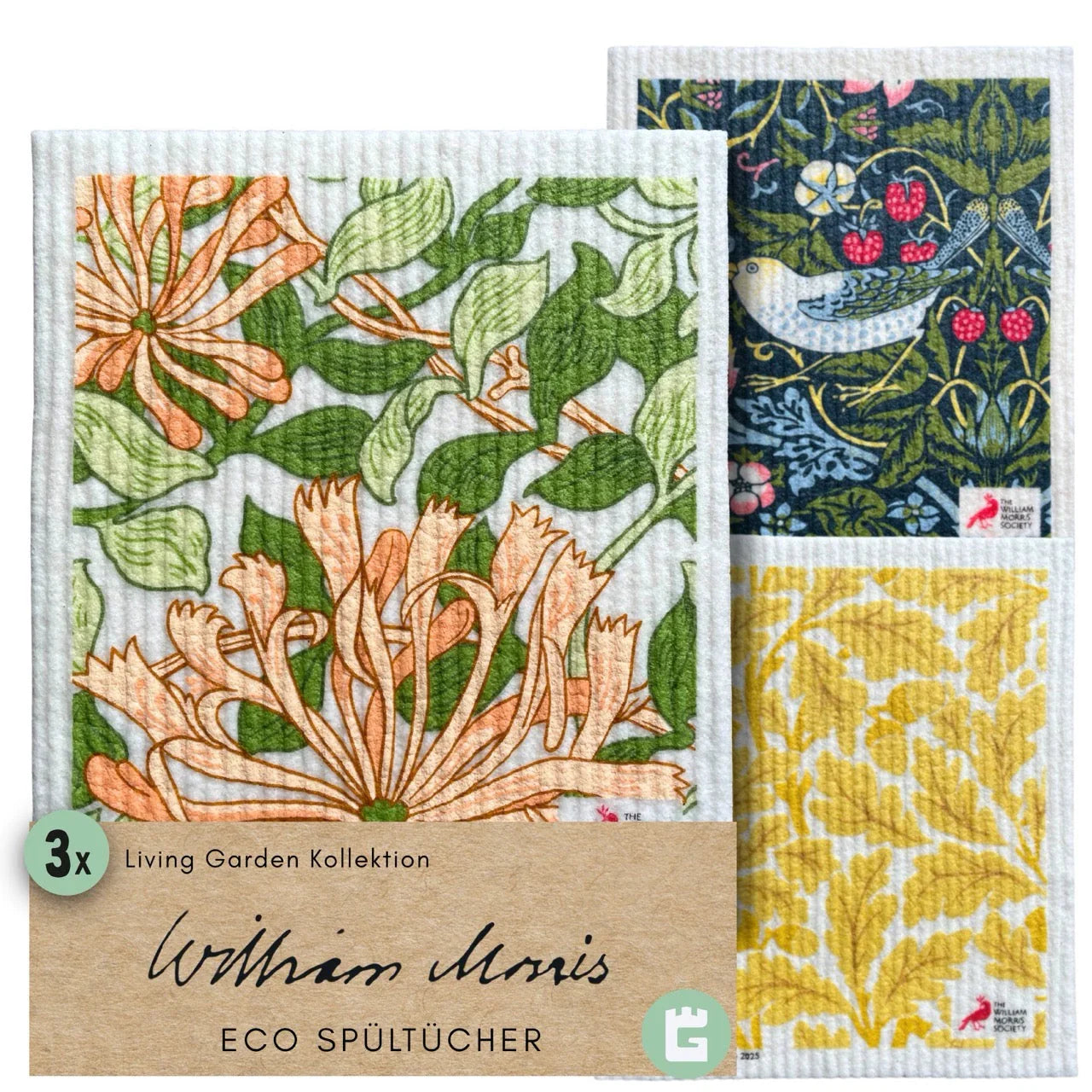 3x Art Spültücher bedruckt Set - William Morris Living Garden