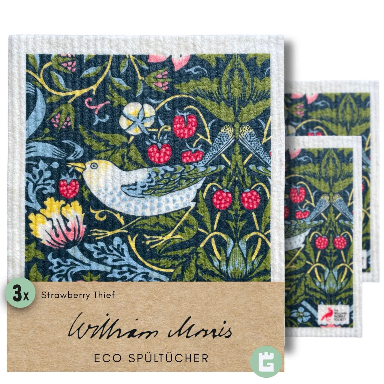 3x Art Spültücher waschbar - Original William Morris Strawberry Thief
