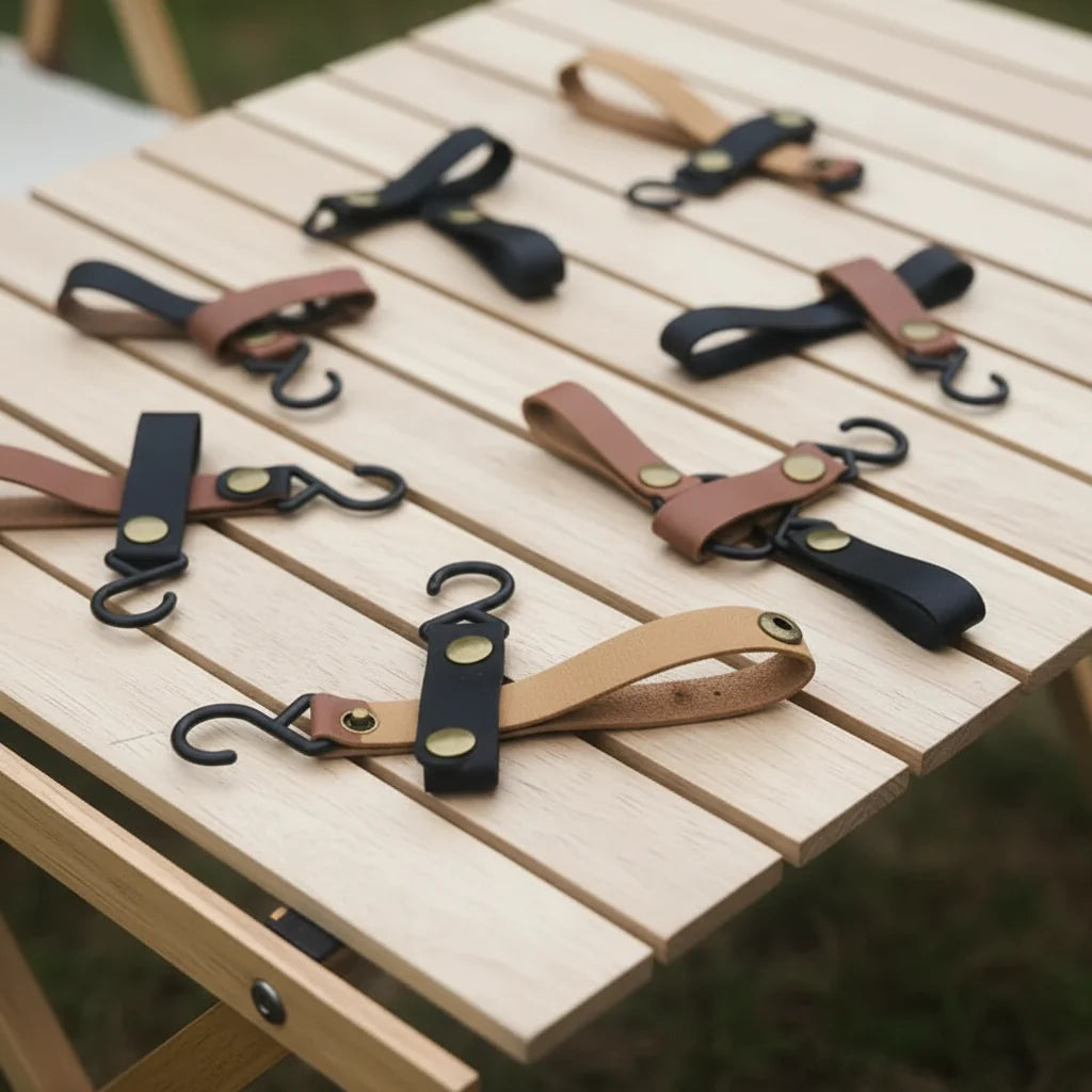 Der robuste PU-Lederriemen hält zuverlässig, ist flexibel einsetzbar und sorgt dafür, dass alles an seinem Platz bleibt – egal, ob im Wohnmobil, Vorzelt oder an der Outdoor-Küche.