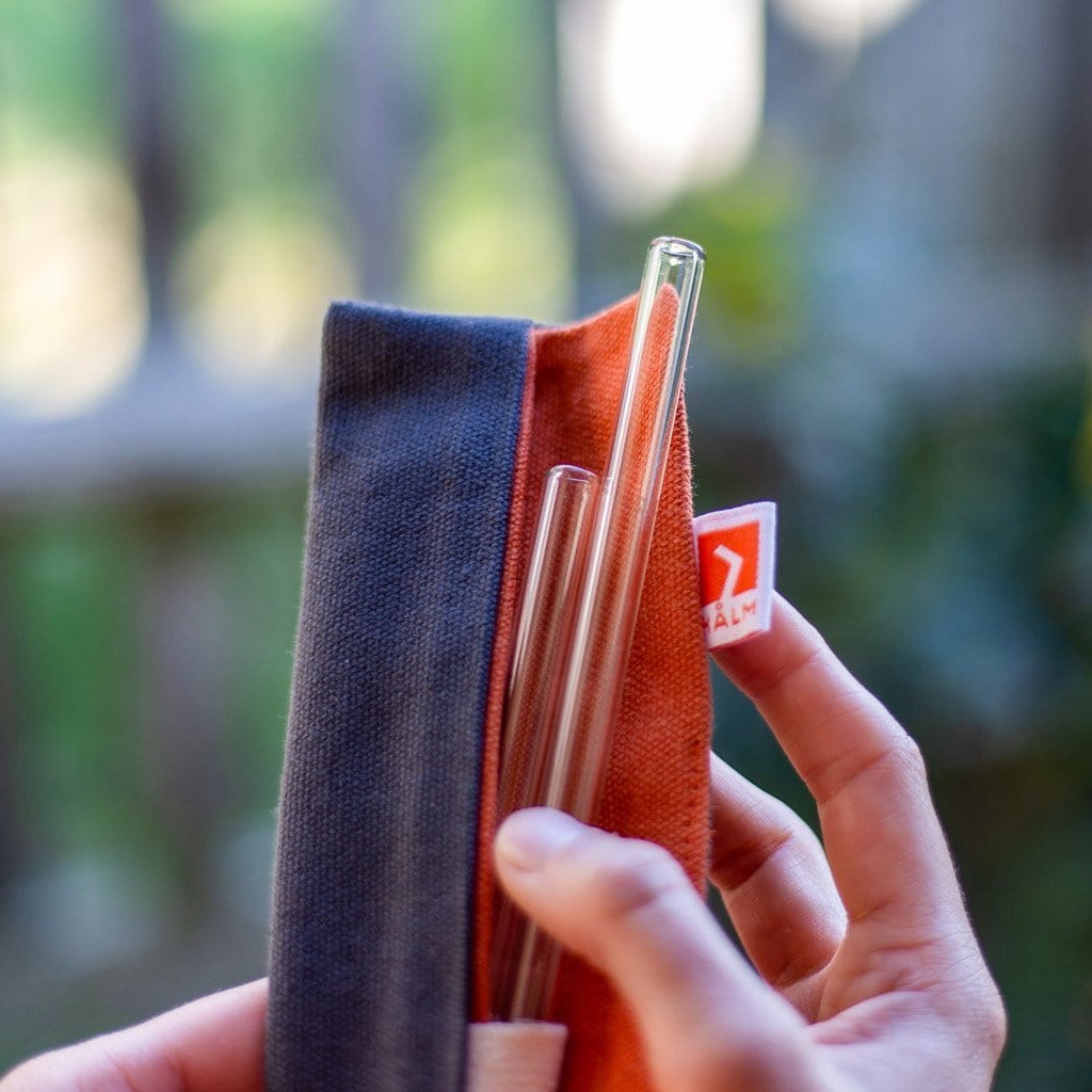 4x 23cm (Gerade) Glasstrohhalme inkl. kleiner orangen Tasche für Reise oder Transport
