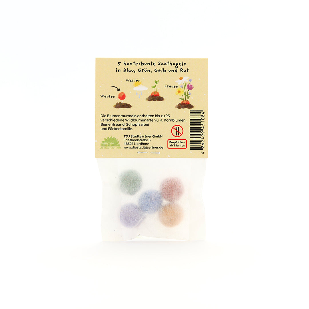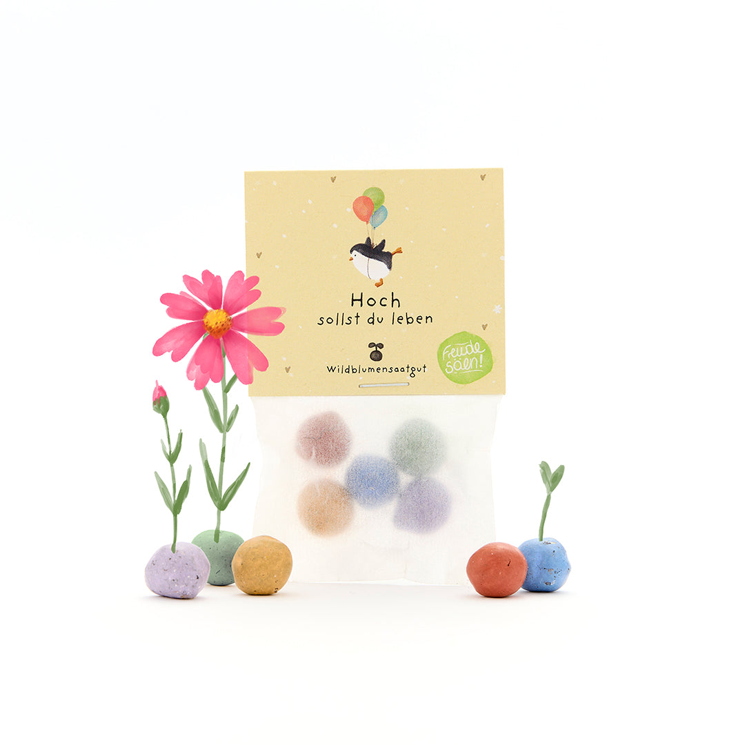 5 Blumenmurmeln im Tütchen "Hoch sollst du leben"