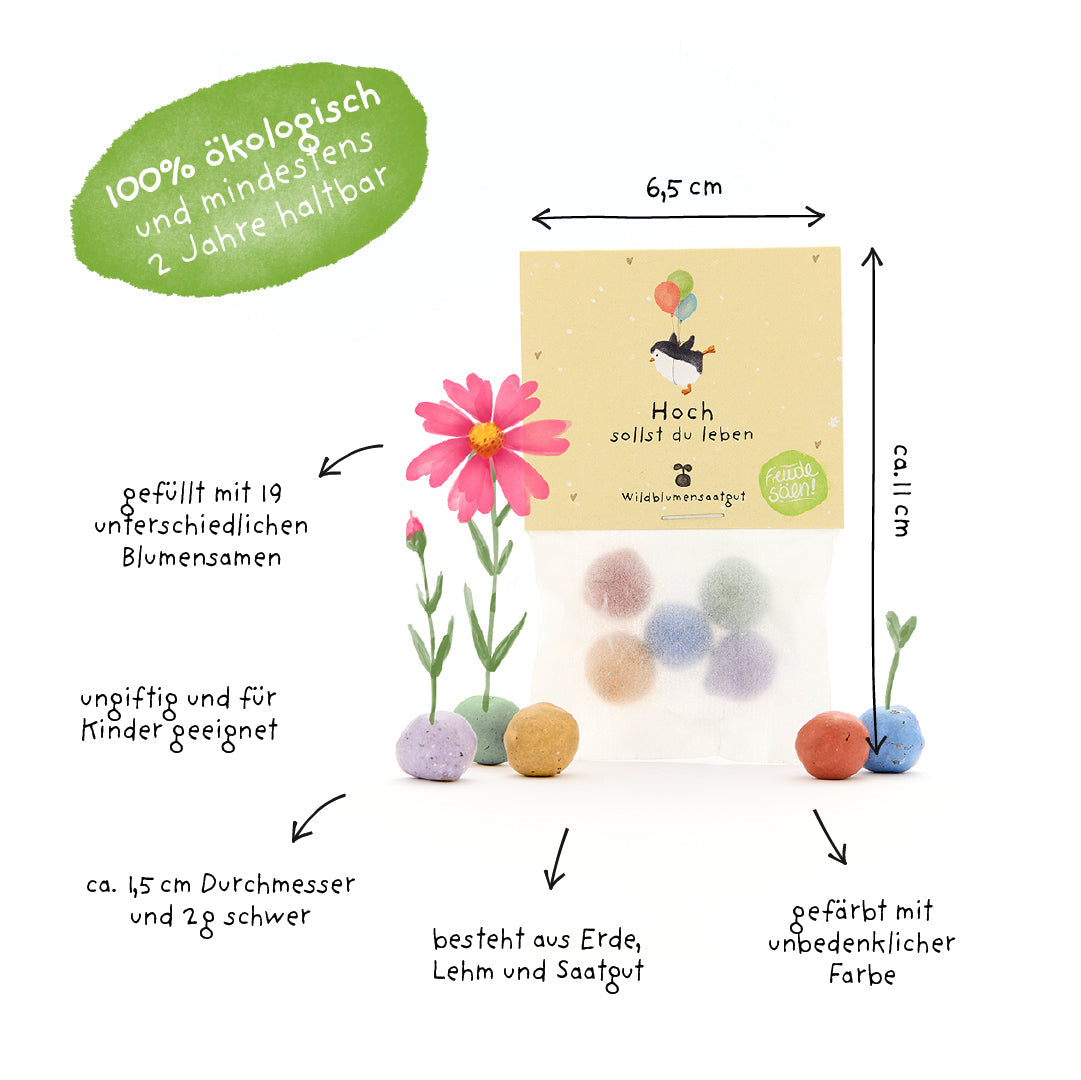 Tolles Geschenk zum Geburtstag: Dieses Set enthält ein liebevoll gestaltete Tütchen mit 5 bunten Blumenmurmeln. Mit dem Spruch "Hoch sollst... Lesen Sie mehr