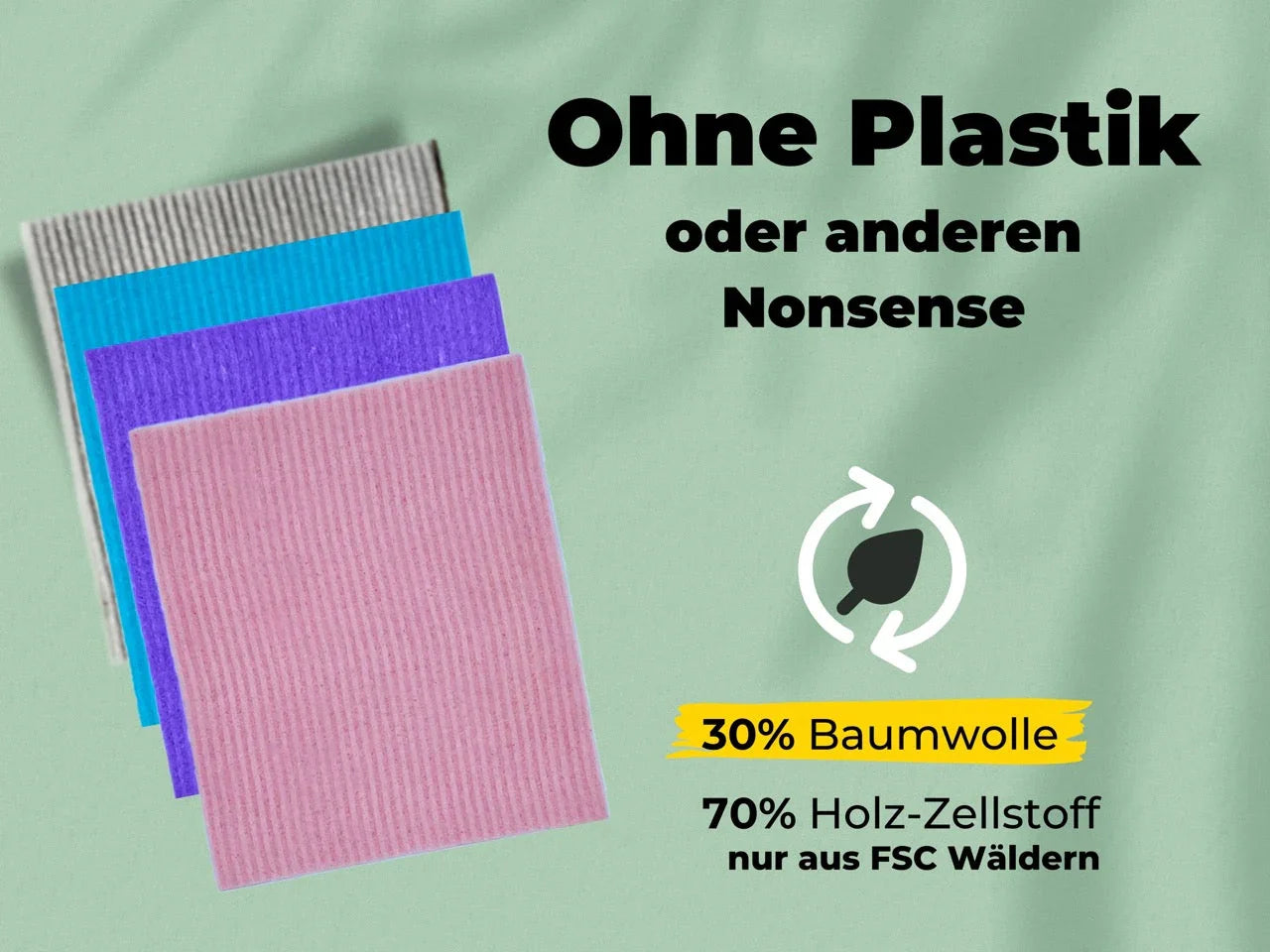 Waschbares Schwammtuch grau wird produziert aus 70% Holz-Zellstoff & 30% Baumwolle. Damit sind Küchenlappen gut für die Umwelt, und nach Ihrer langen Lebenszeit kompostierbar und 100% biologisch abbaubar