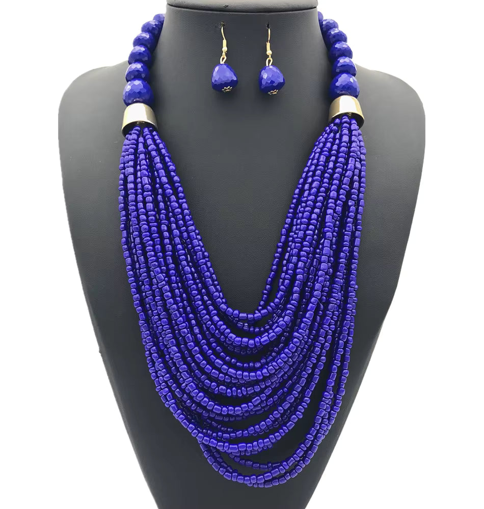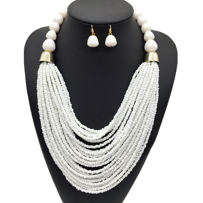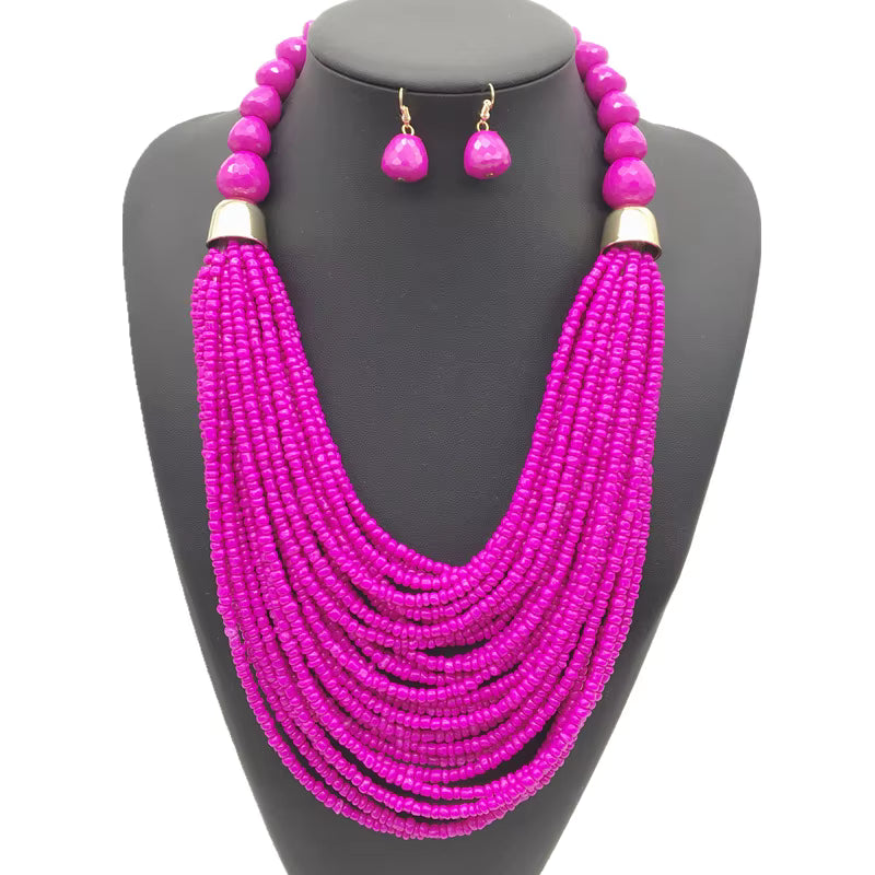 Acryl-Perlen Schmuck-Set – Halskette & Ohrringe, Statement/Choker, African Style, Damen