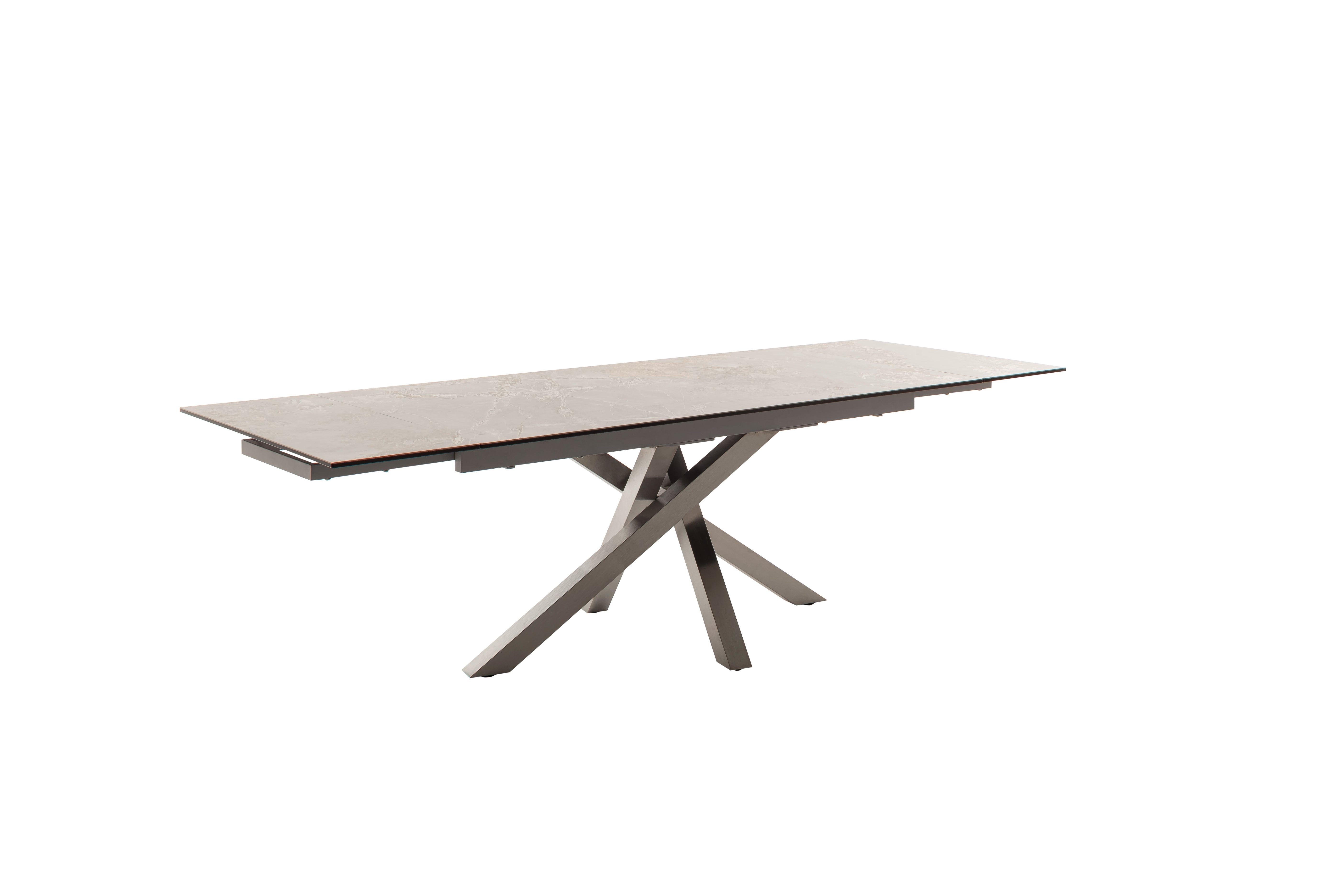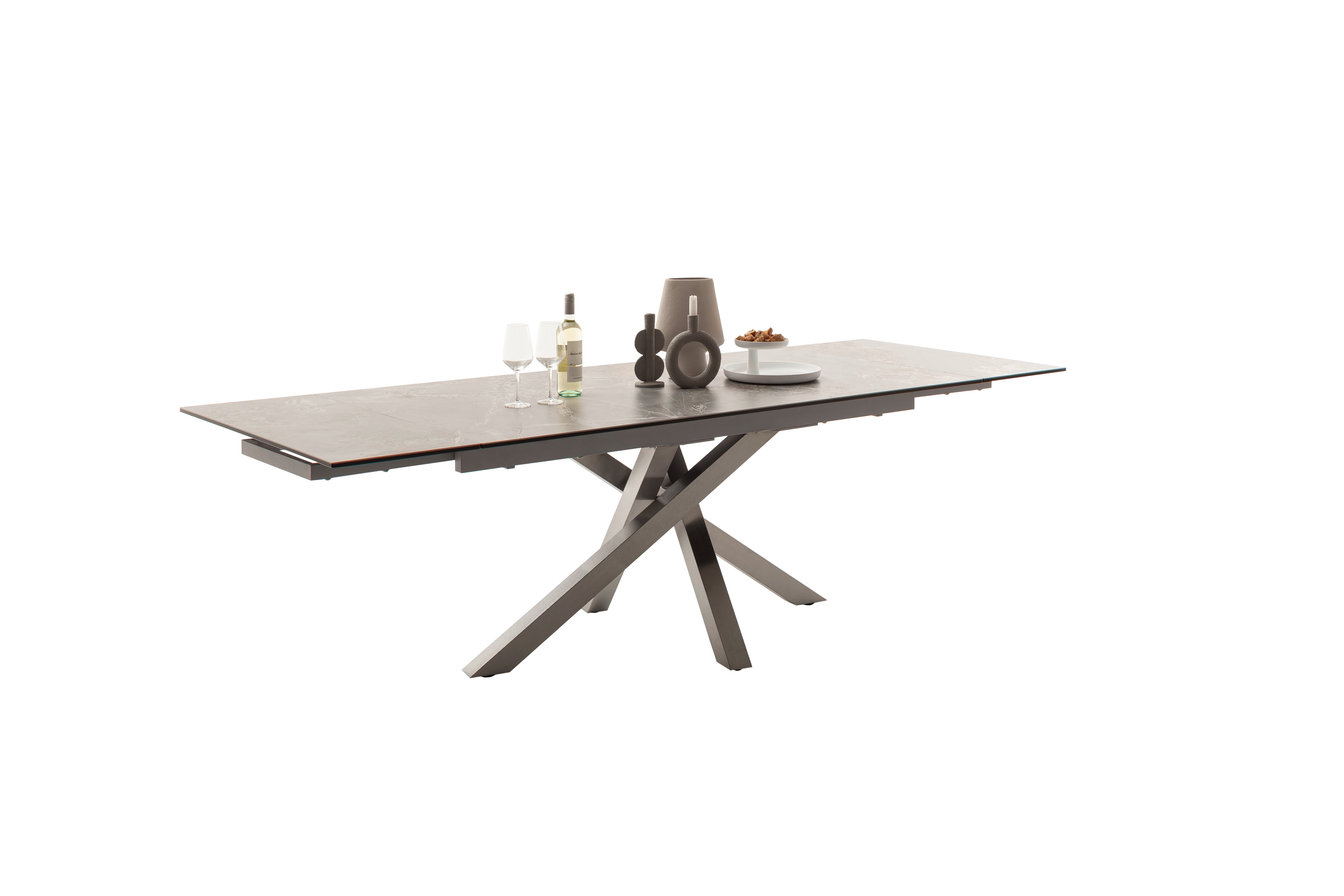 Vierfußtisch mit Auszug Synchronauszug B/H/T ca. 180 (260) / 76 / 95 cm Keramik / Sicherheitsglas schwarz lackiert / 13mm... Lesen Sie mehr