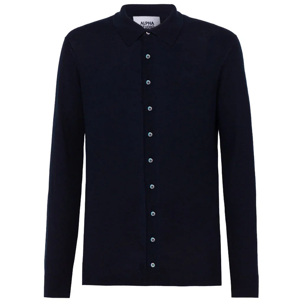 Alpha Studio dark blue cotton shirt with long sleeves and button closure Lesen Sie mehr