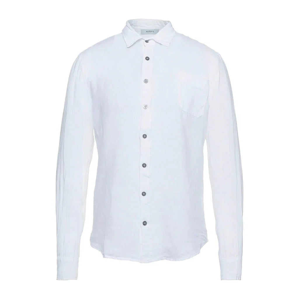 Alpha Studio linen shirt, button closure, breast pocket on front, white color. Made in Italy Lesen Sie mehr