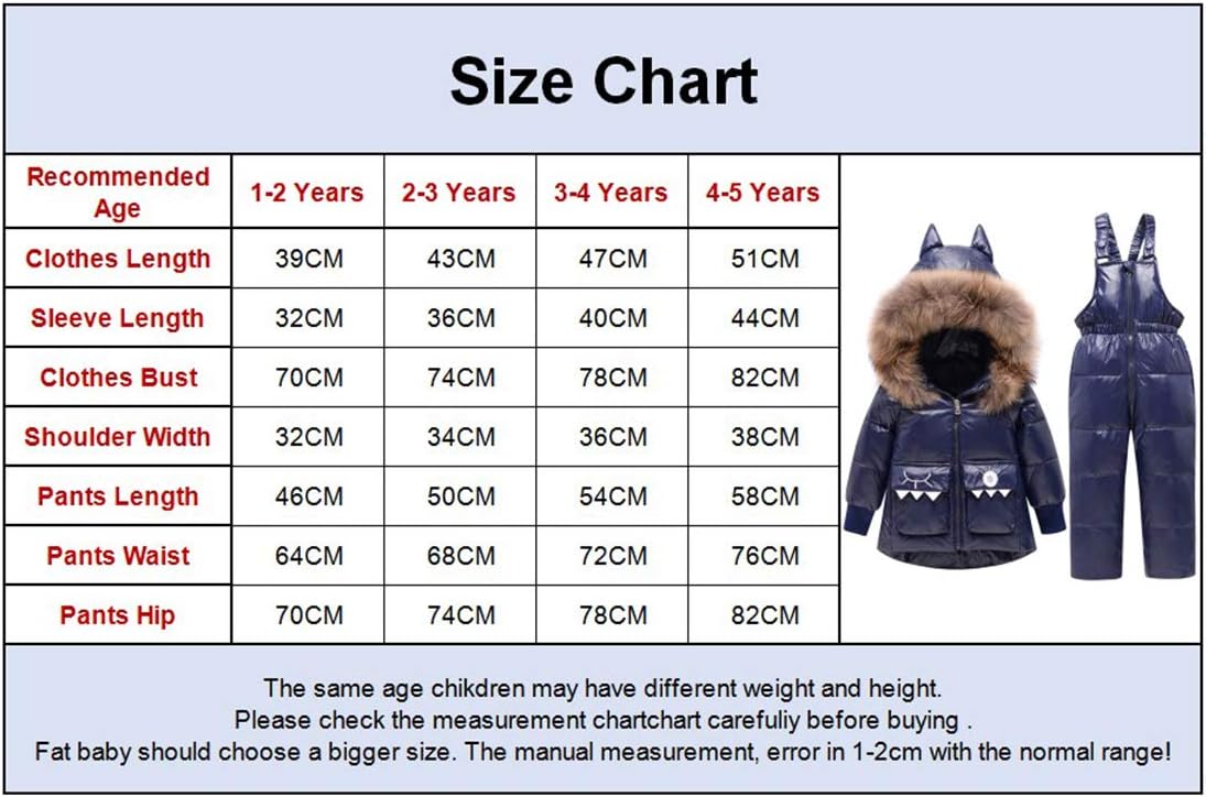 amropi Skianzug Mädchen Kinder Schneeanzug Daunenjacke mit Kaputze + Skihose 2tlg Bekleidungsset Winteranzug für 1-5 Jahre