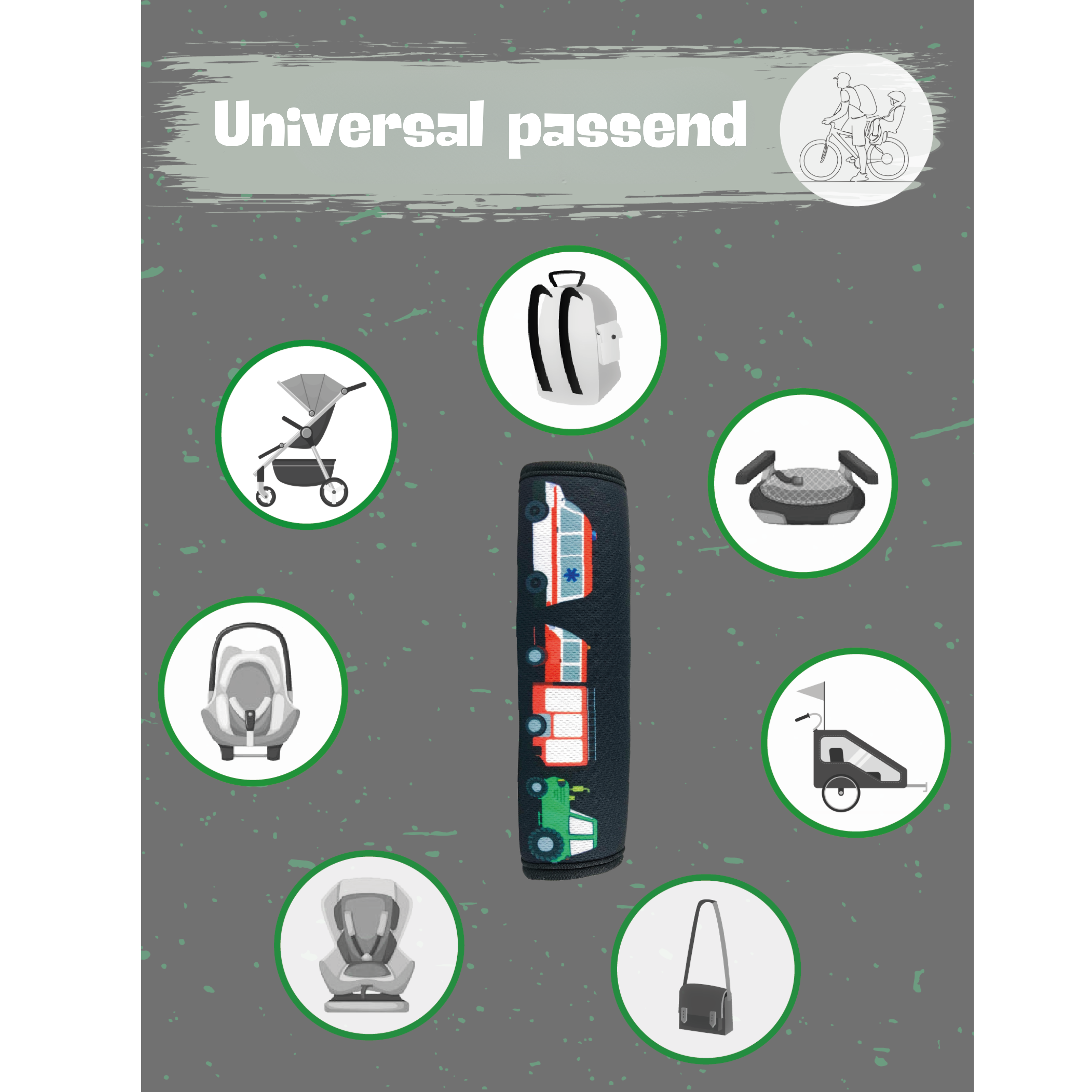 🚒 KINDERGERECHTES FAHRZEUG-MOTIV: HECKBO Gurtschoner mit coolen Fahrzeugen wie Feuerwehr, Krankenwagen und Traktor – ideal für kleine Autofans und perfekt für Jungen, die Einsatzfahrzeuge lieben.