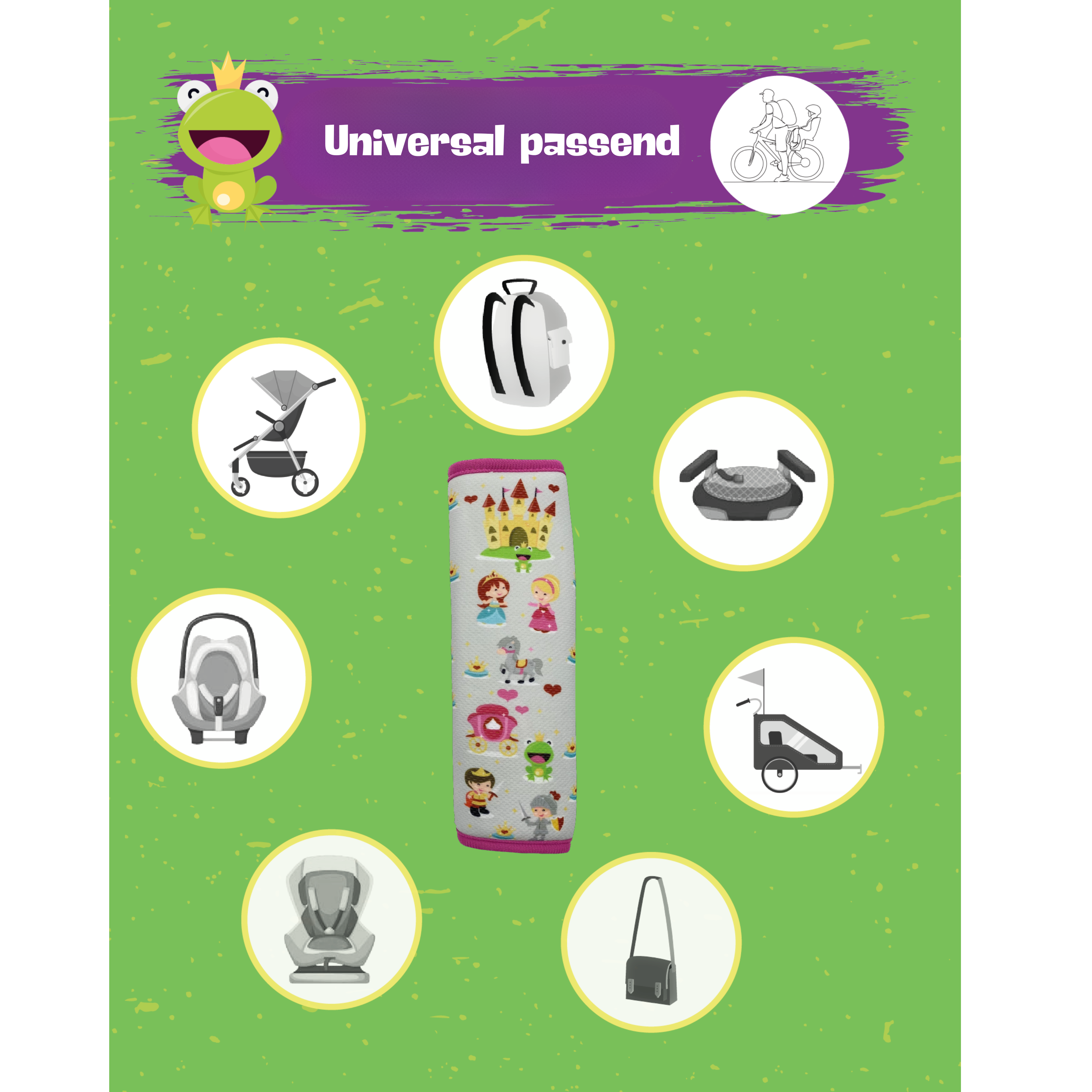 • 1x oder 2x HECKBO Gurtkissen – Froschkönig-Motiv