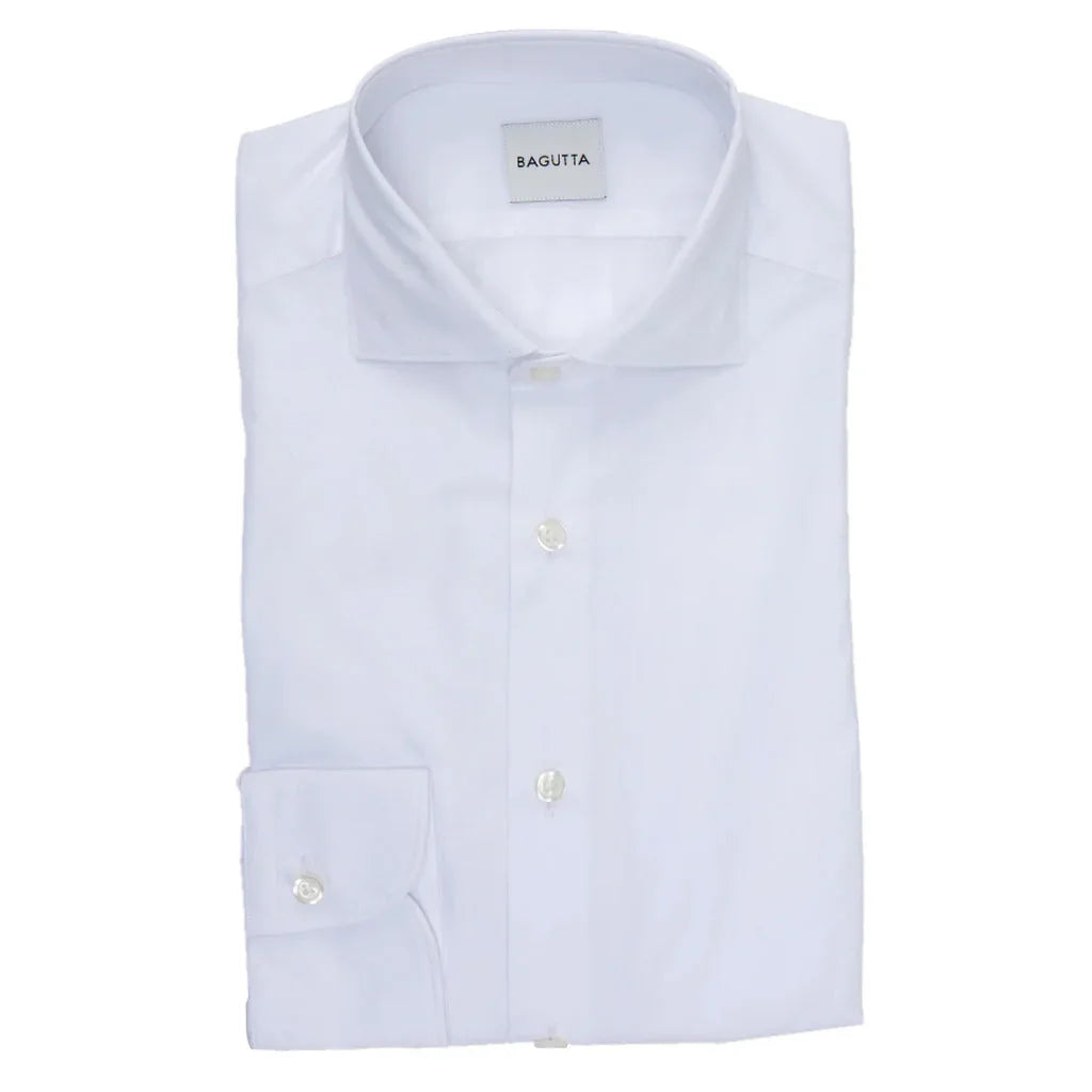 Bagutta slim-fit shirt in 100% white cotton, French collar, long sleeves and mother-of-pearl buttons. Lesen Sie mehr