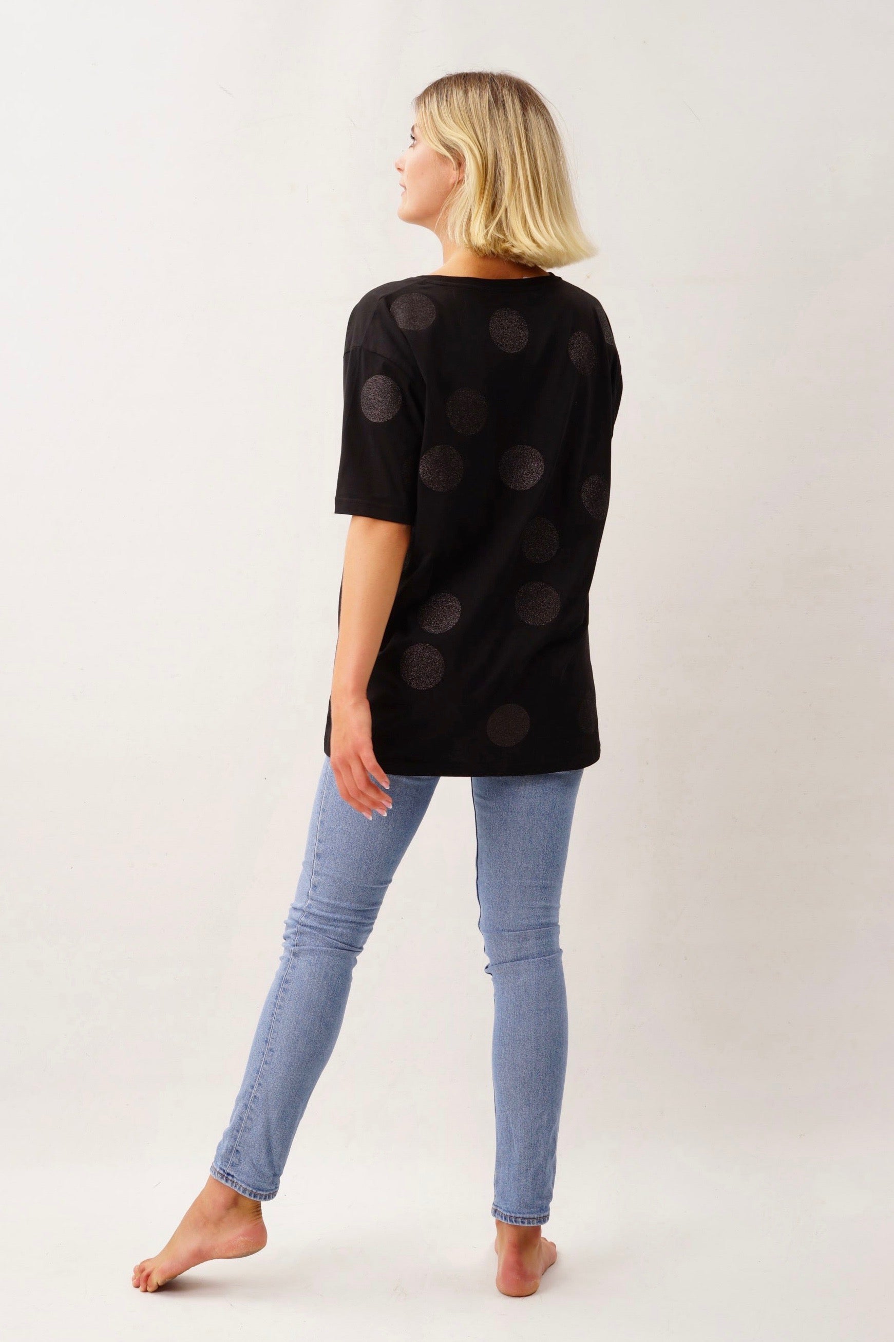 This high quality festive unisex T-shirt 100%cotton comes with big glitter dots allover. Handwash only recommended ! Glitter can harm other... Lesen Sie mehr