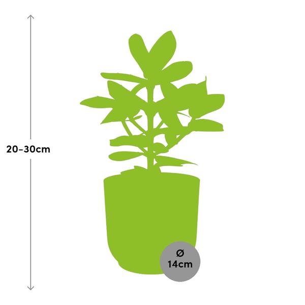 Die Clusia Princess (Balsamapfel), auch bekannt als Autogrammbaum, ist eine außergewöhnliche und pflegeleichte Zimmerpflanze, die sich durch ihre kräftigen, dickblättrigen und ledrigen Blätter auszeichnet. Mit einer Pflanzgröße passend zum Ziertopf Vibes Fold Rosa Ø14cm ist sie sofort einsetzbar als dekoratives Wohnaccessoire.