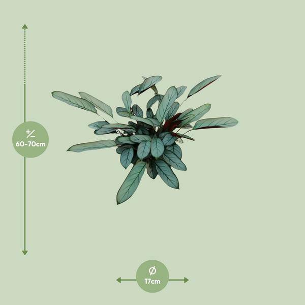 Die Bamburanta (Ctenanthe Oppenheimiana), auch bekannt als Nevernever-Pflanze, ist eine tropische Schönheit mit einzigartigem Blattwerk. Mit einer Höhe von ca. 70cm und einem Topfdurchmesser von 17cm eignet sie sich hervorragend für kleinere Räume und setzt dennoch ein starkes dekoratives Statement.
