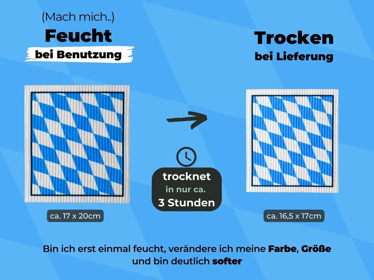 Unsere nachhaltige Bayern Deko hält bis zu 5x länger als übliche Spüllappen und bleiben deutlich hygienischer.
