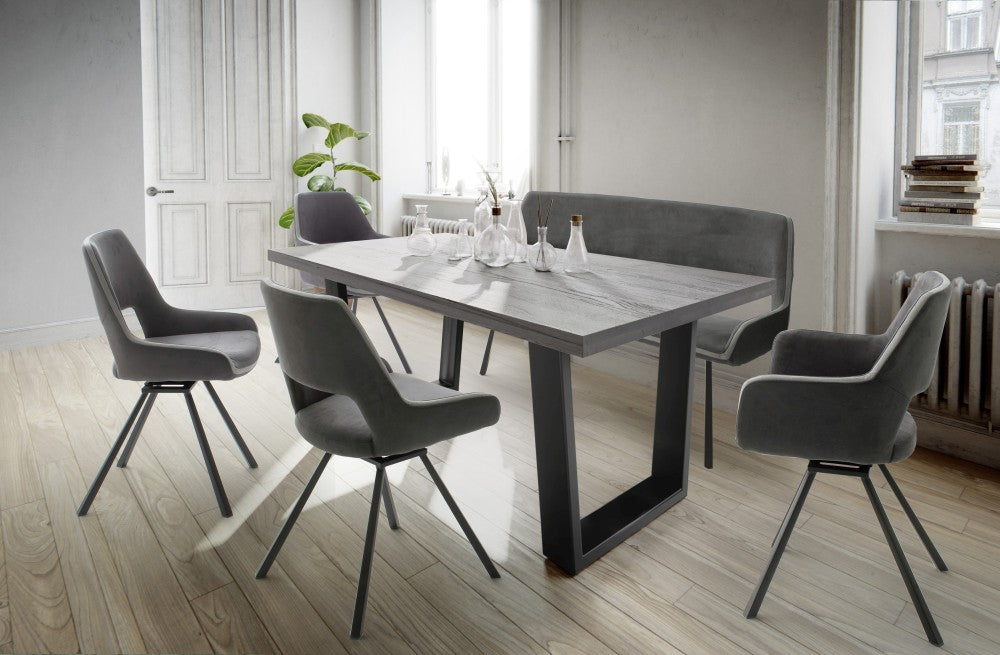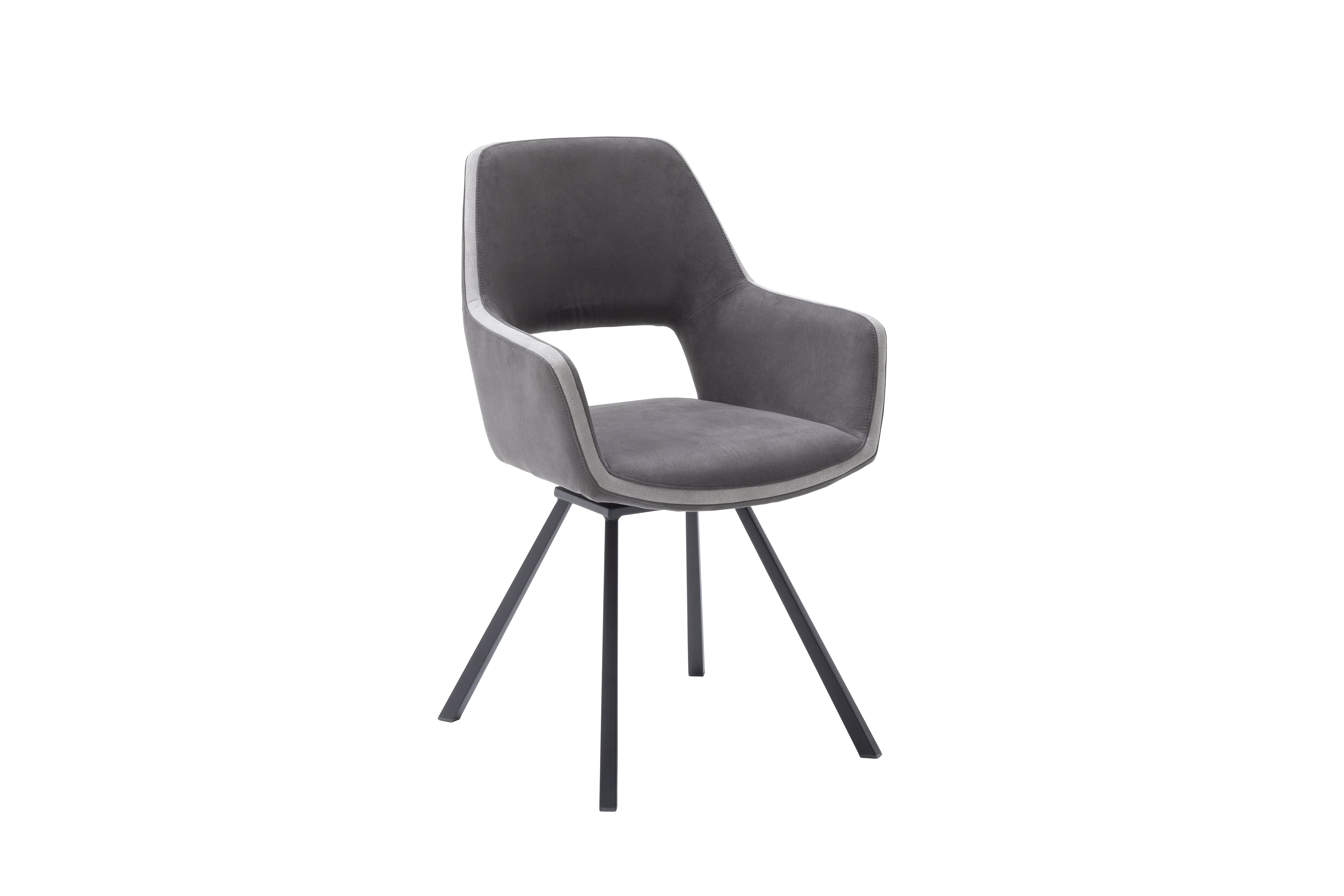 4-Fuß Stuhl mit oder ohne Armlehnen Vintagelook mit umlaufendem Kontrastleder 100% Polyester Gestell: Kantrohr, konisch / anthrazit lackiert 180° drehbar... Lesen Sie mehr