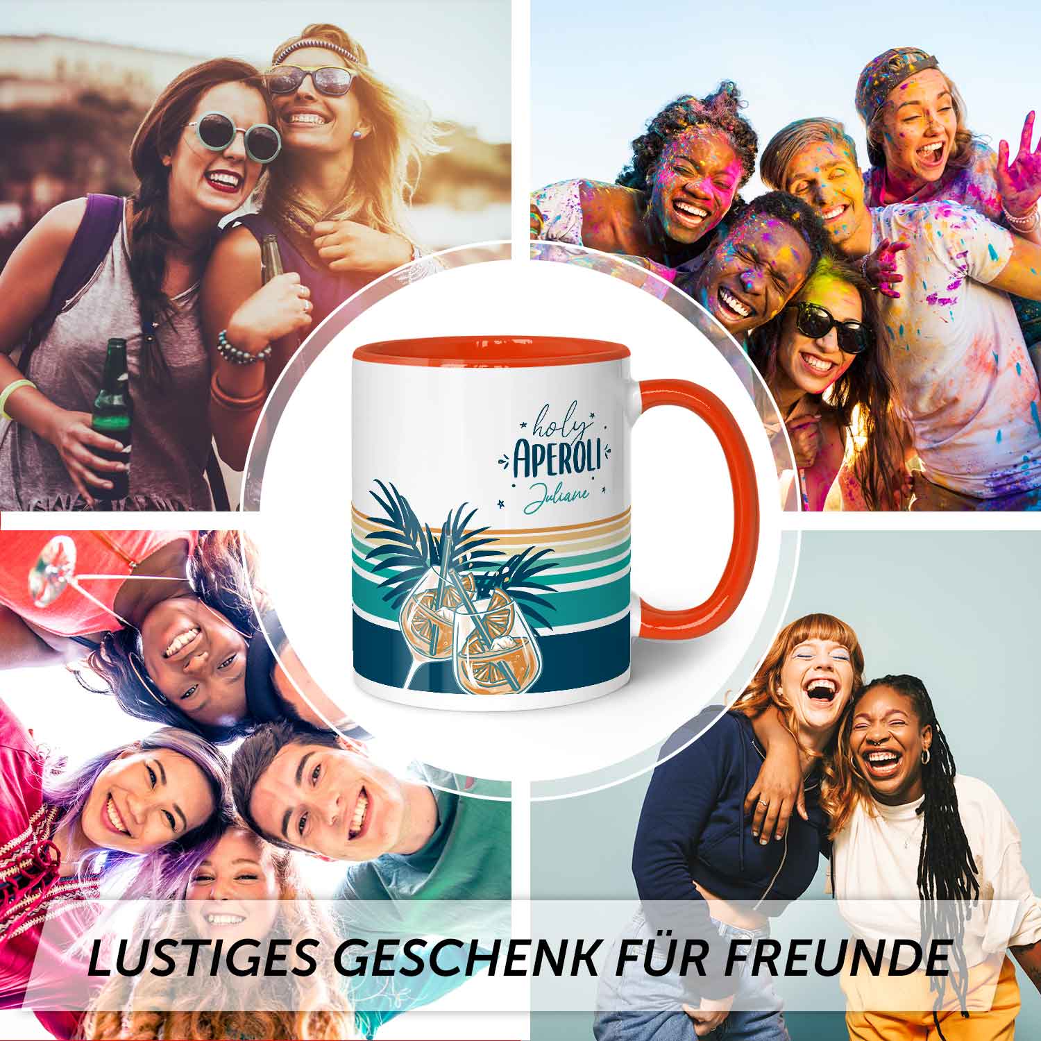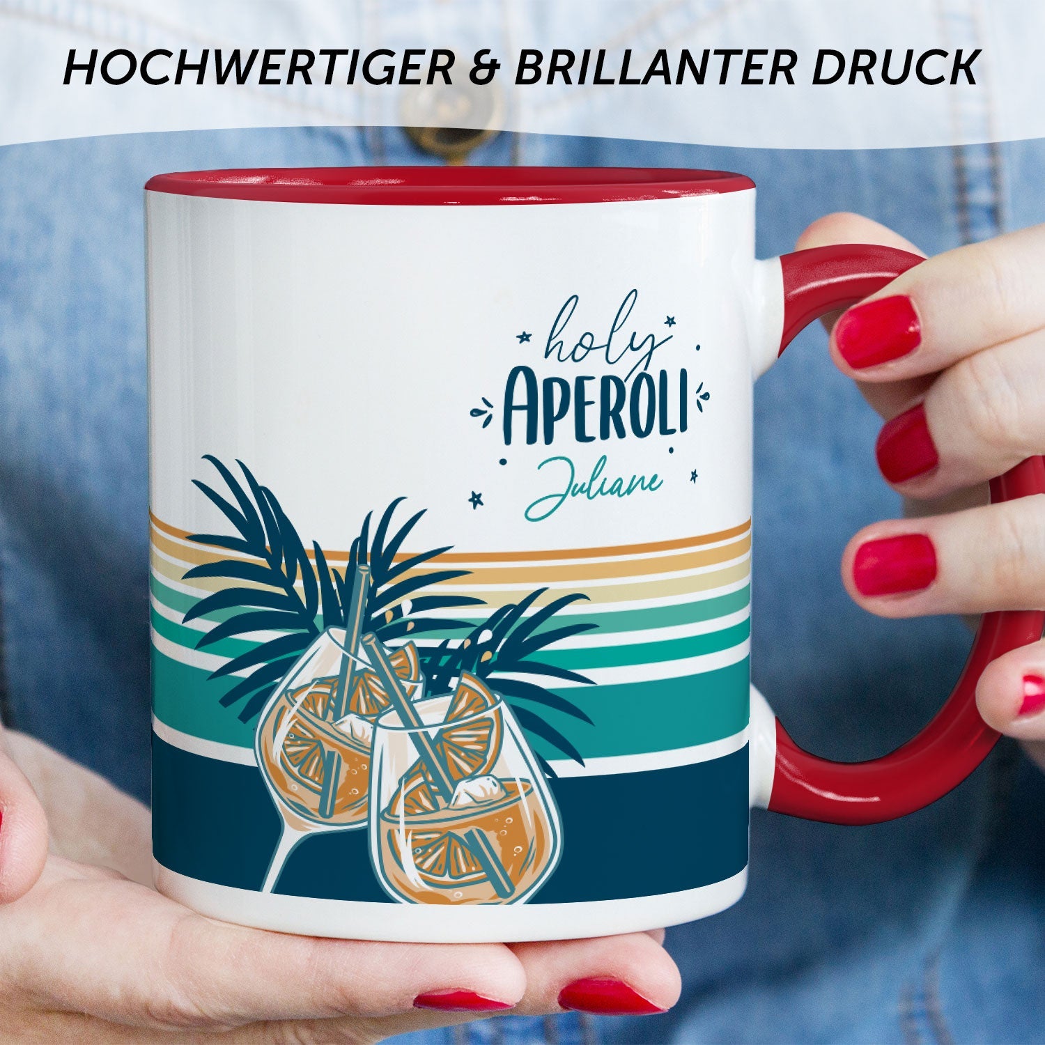 Bedruckte Tasse mit Aperol Spritz Motiv - Holy Aperoli - Aperol Geschenk für Frauen und Männer