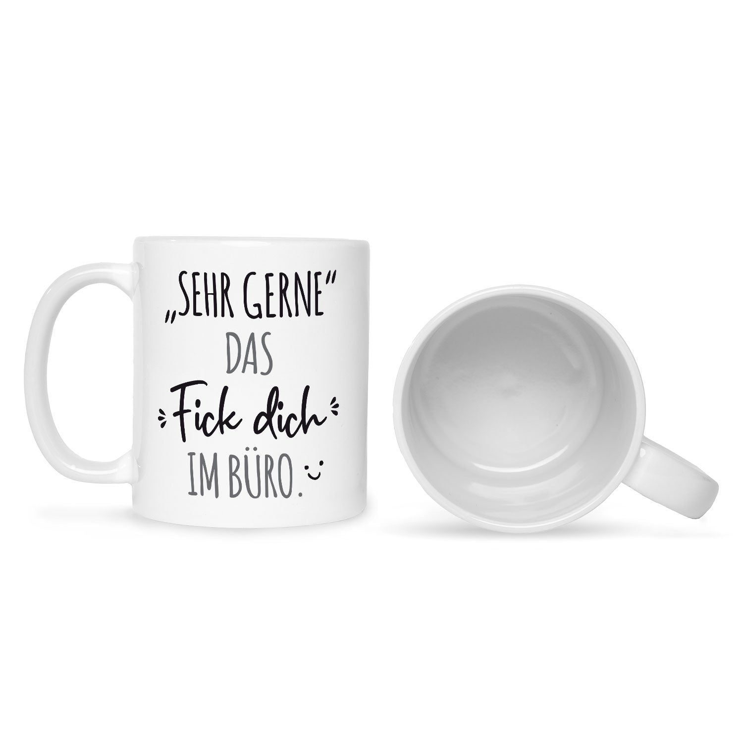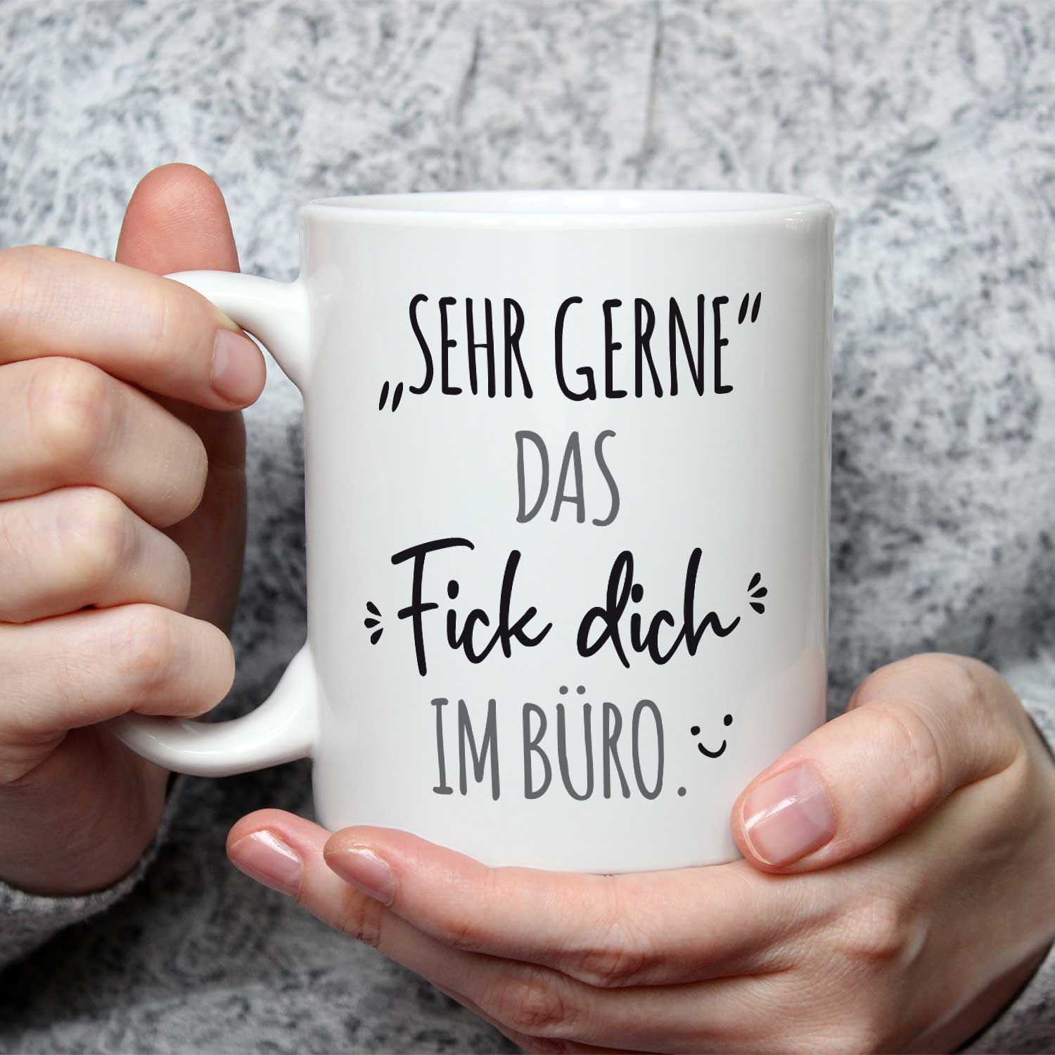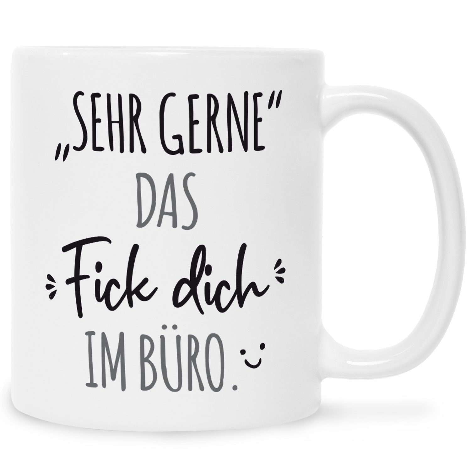 Bedruckte Tasse mit Spruch Das Fick dich im Büro