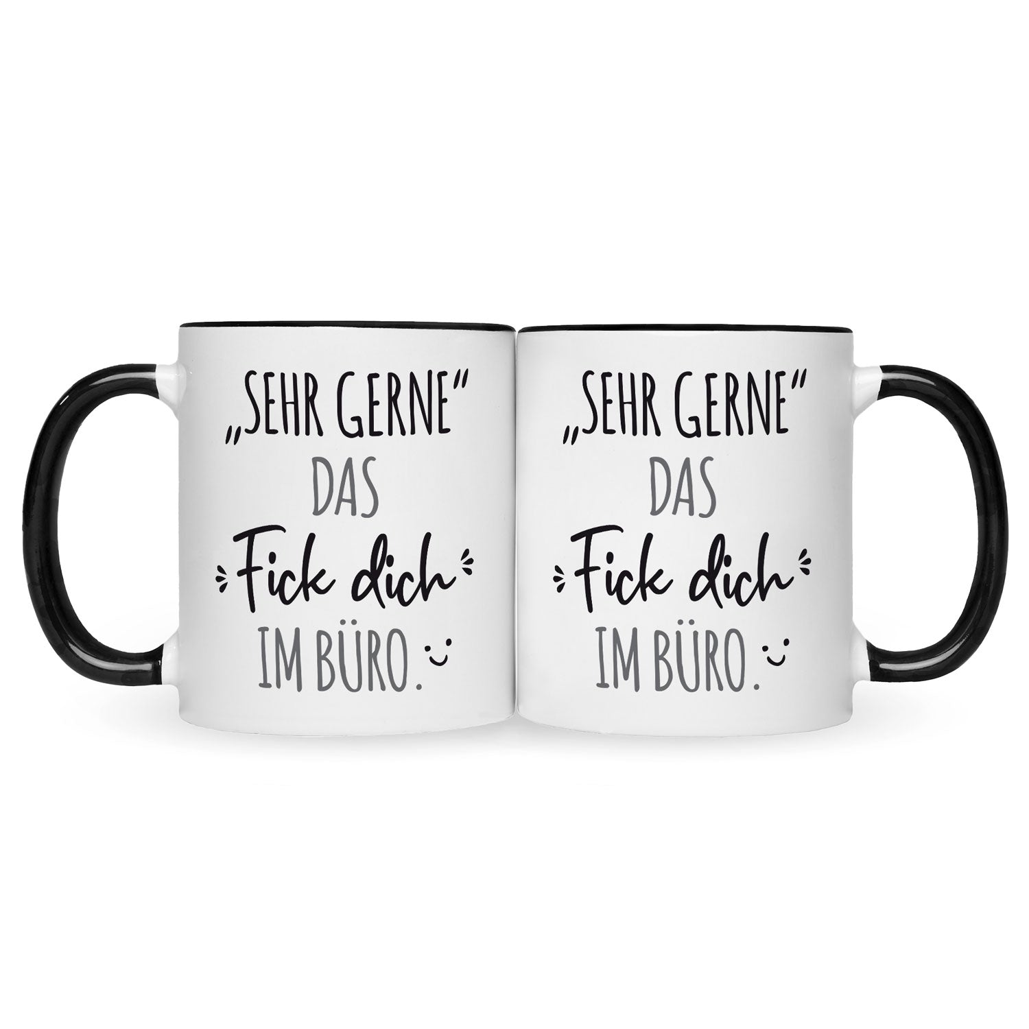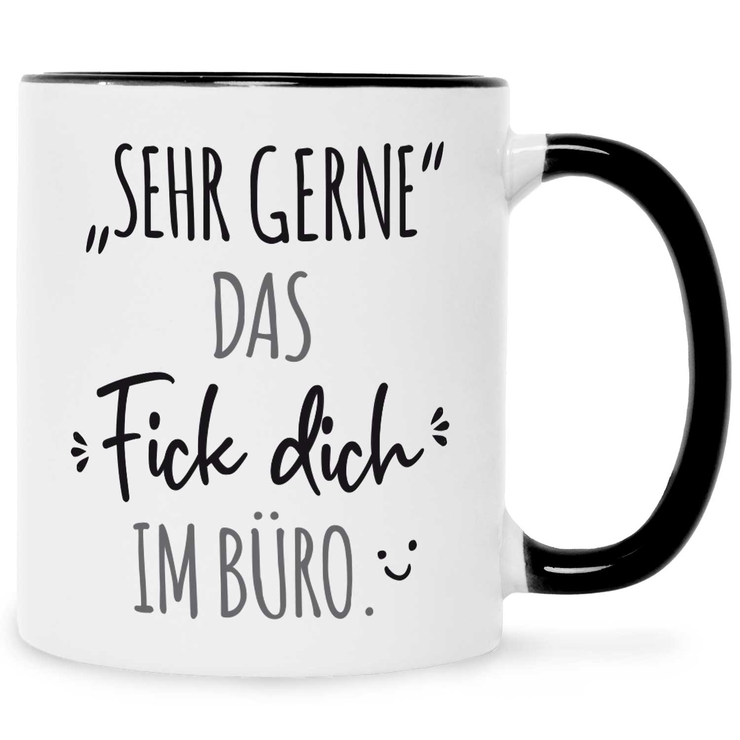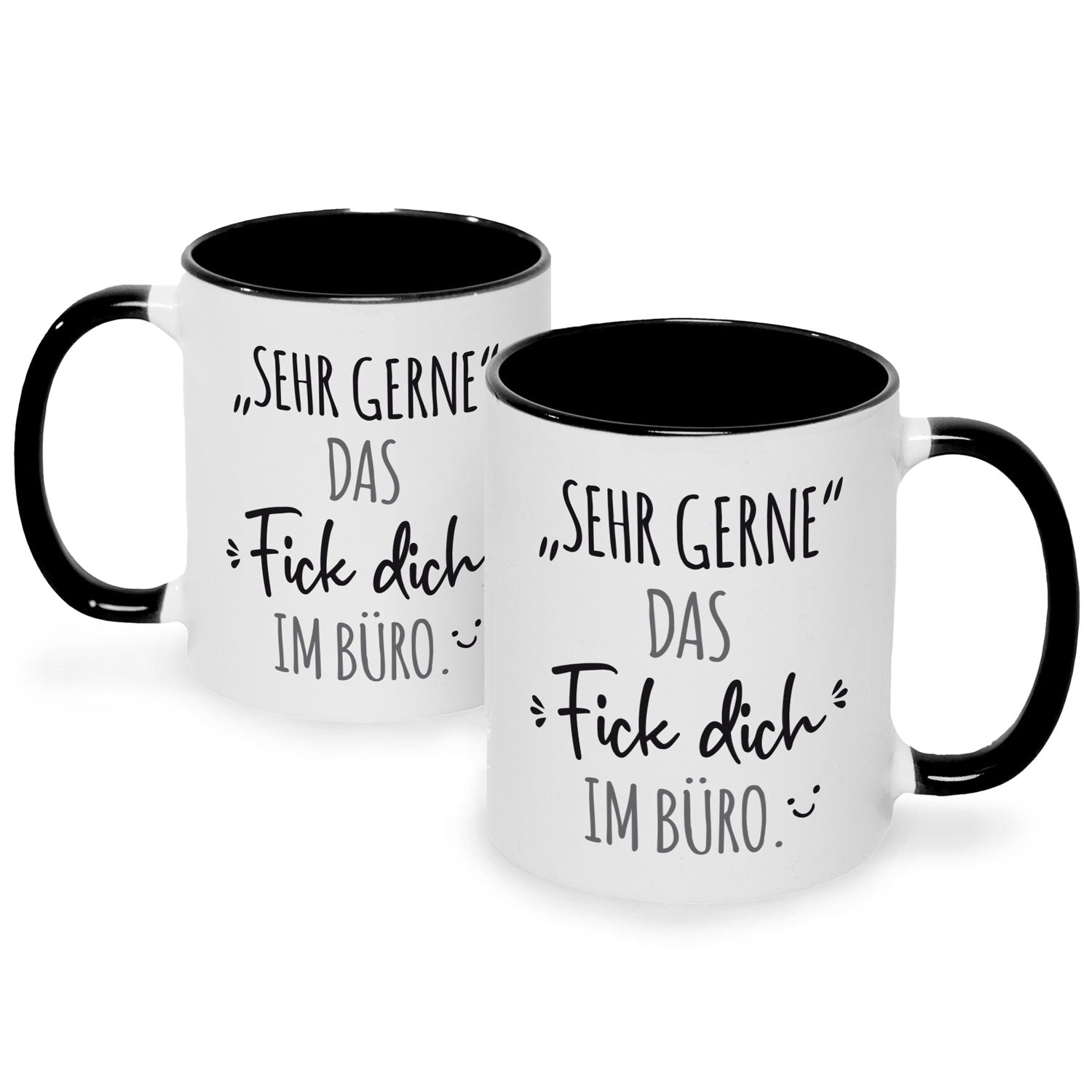 Bedruckte Tasse mit Spruch Das Fick dich im Büro