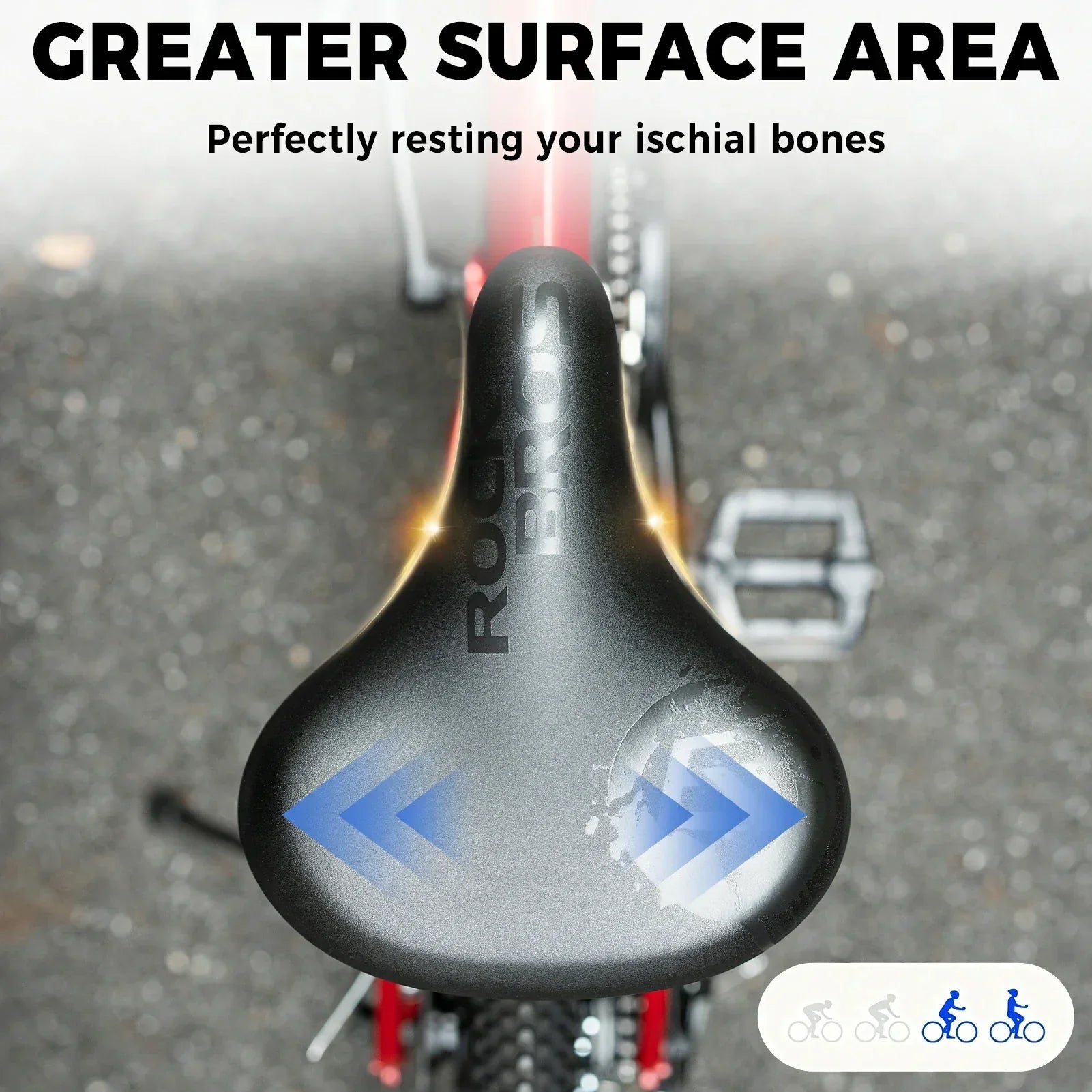 ERGONOMISCHES DESIGN: Der Sattel ist ergonomisch geformt, mit schmaler Vorderpartie und runder Hinterseite, sodass die Oberschenkel frei bleiben. Der Druck wird gleichmäßig auf Sitzknochen und Becken verteilt, Taubheitsgefühle werden reduziert. Sogar auf längeren Fahrten sorgt er für hohen Komfort