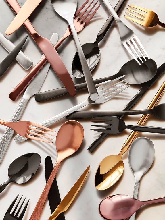 Ein besonderes Besteck für besondere Anlässe oder auch für täglich. Moderne, schlichte Form aus gehämmertem, matt satiniertem Edelstahl. Sowohl als 4teiliges... Lesen Sie mehr