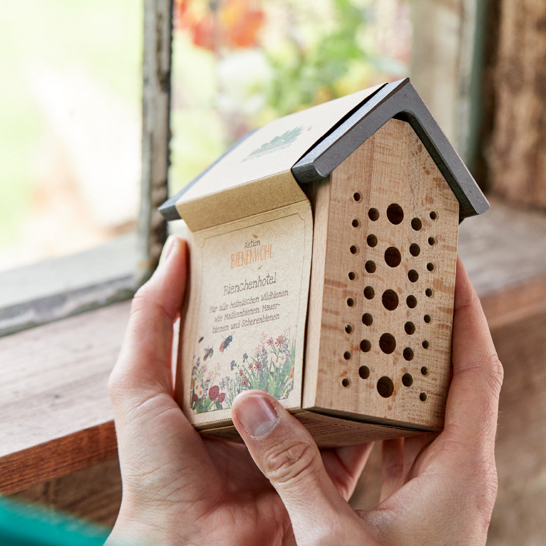 Das Bienchenhotel bietet mit den unterschiedlich großen Bohrungen einen sicheren Unterschlupf für zahlreiche Wildbienen wie Maskenbienen, Mauerbienen und Scherenbienen. Unser... Lesen Sie mehr