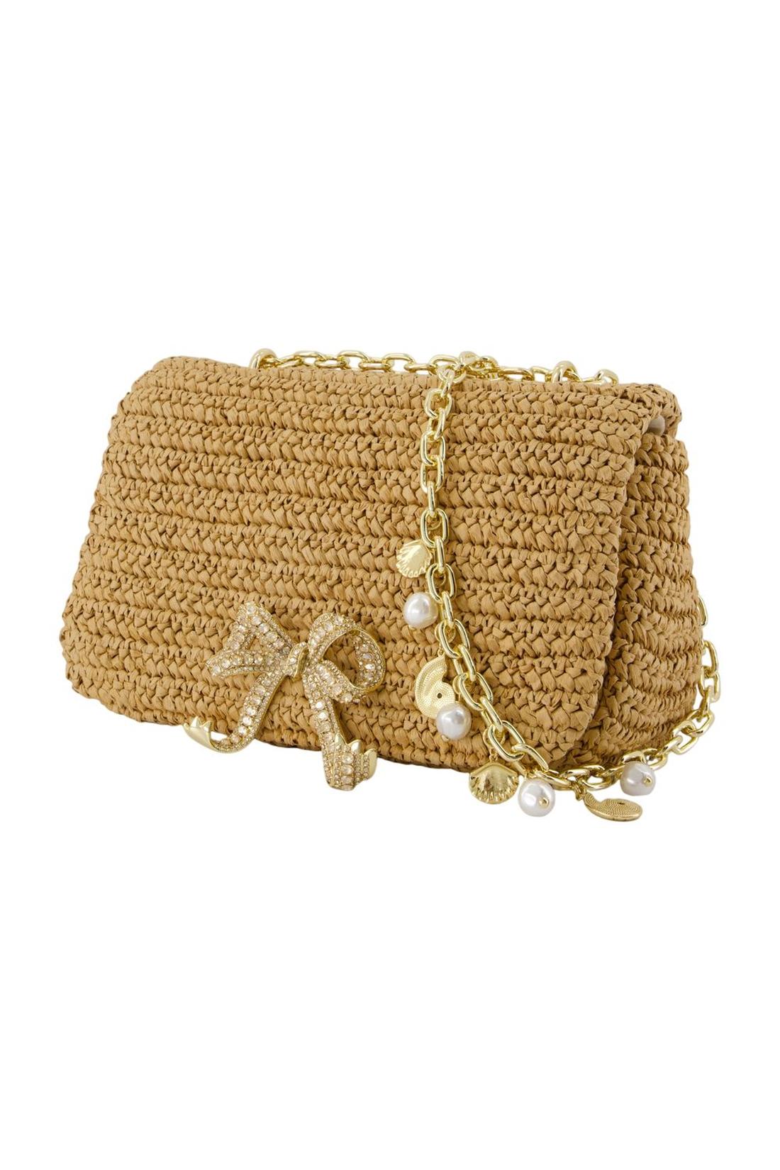 Bow Charm Schultertasche - SELF PORTRAIT - Raphia - Braun