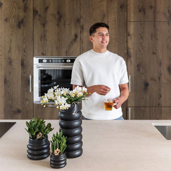Dank seiner neutralen schwarzen Farbgebung passt dieser Keramiktopf zu nahezu jedem Einrichtungsstil – von minimalistisch und modern bis hin zu klassisch oder industriell. Er lässt sich leicht mit anderen Möbeln, Töpfen und Wohnaccessoires kombinieren und fügt sich harmonisch in verschiedene Wohnbereiche ein.