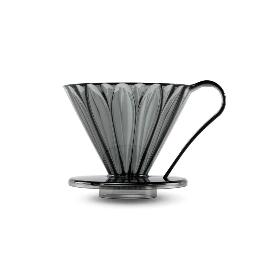 This exceptional dripper features extremely high light transmittance and is crafted from Eastman Tritan™ copolyester, which is safe, heat-resistant, strong, durable, and provides excellent thermal insulation. What makes this dripper truly compelling is the strategic distribution of petal ribs on the inner wall, allowing coffee powder to expand perfectly and creating optimal space between filter paper and dripper.
