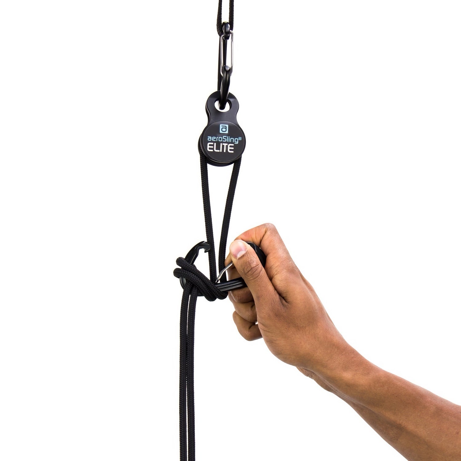 Our sturdy carabiner can be used in a variety of ways while enduring a heavy load. It is particularly well suited for use with sling trainers and resistance bands. Here, for example, it can be used to attach accessories. However, the aerobis carabiner can also be used to fully block for the main rope rotation of the sling trainer.