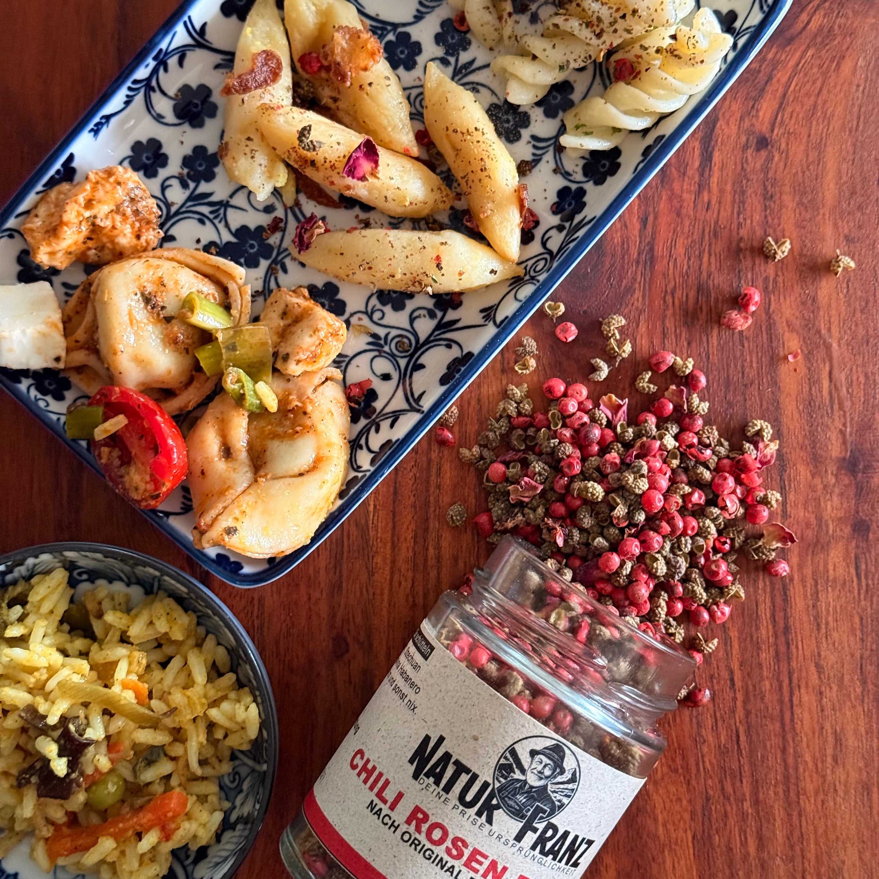 Scharf trifft zart – Feuer küsst Blüte.Unser Chili Rosen Pfeffer vereint die feurige Wärme von Chili mit der floralen Eleganz... Lesen Sie mehr