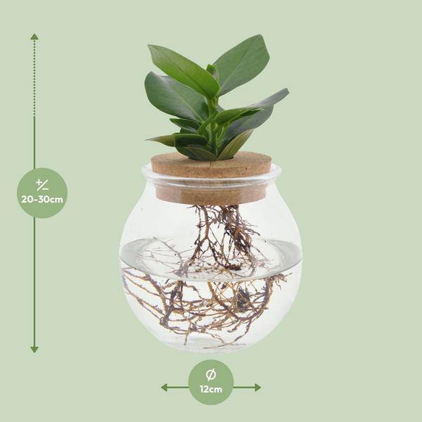 Die Pflanzen wachsen in Hydrokultur, also direkt im Wasser, was sie besonders pflegeleicht macht. Ein regelmäßiges Gießen entfällt – Sie müssen lediglich den Wasserstand kontrollieren und bei Bedarf auffüllen. Mit einer Größe von Ø12cm x H30cm eignet sich das Glas perfekt für Wohnzimmer, Büro, Wintergarten oder als originelles Geschenk.
