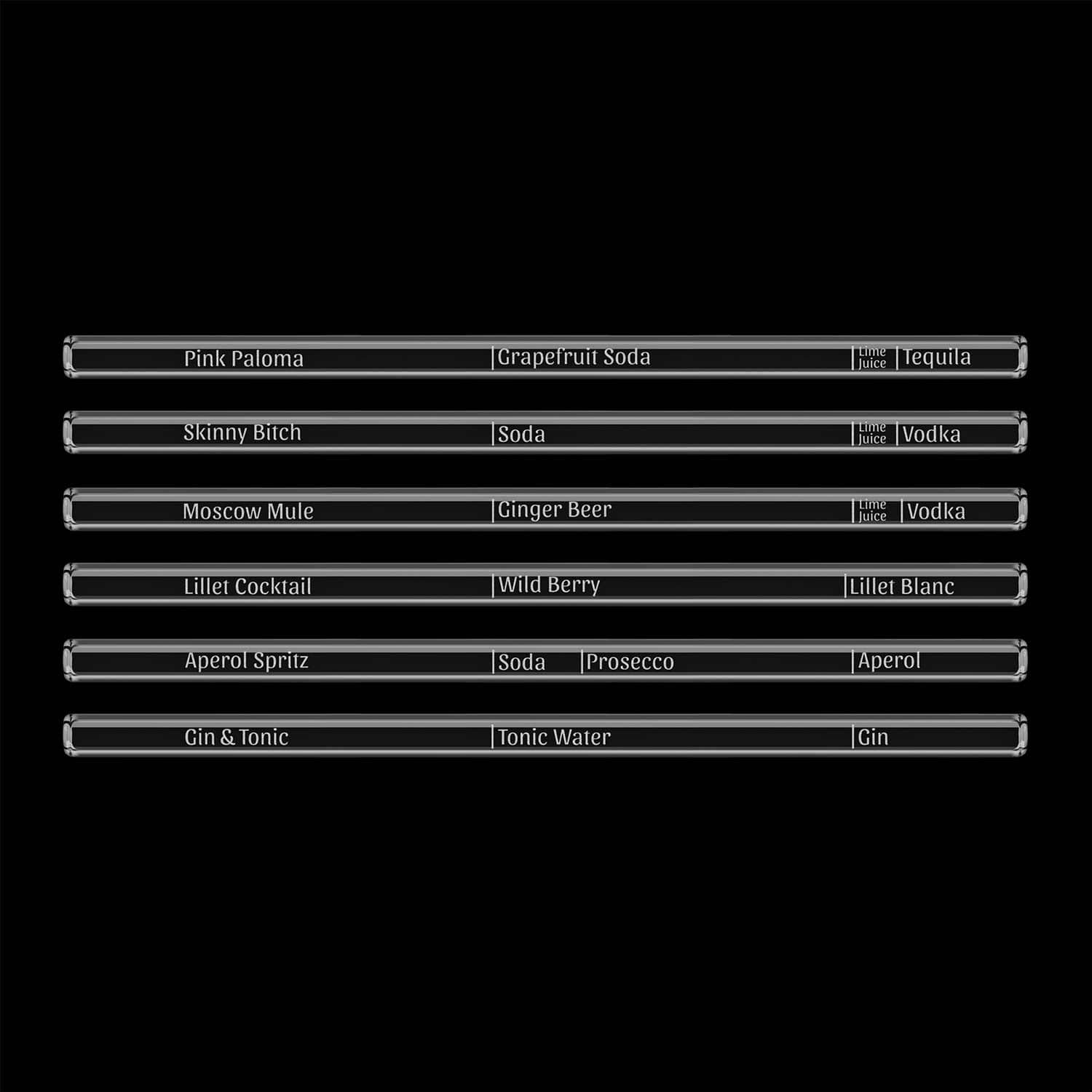 Cocktail Rezepte Glasstrohhalme mit gravierten Maßen für perfektes Mixen - 6er Set