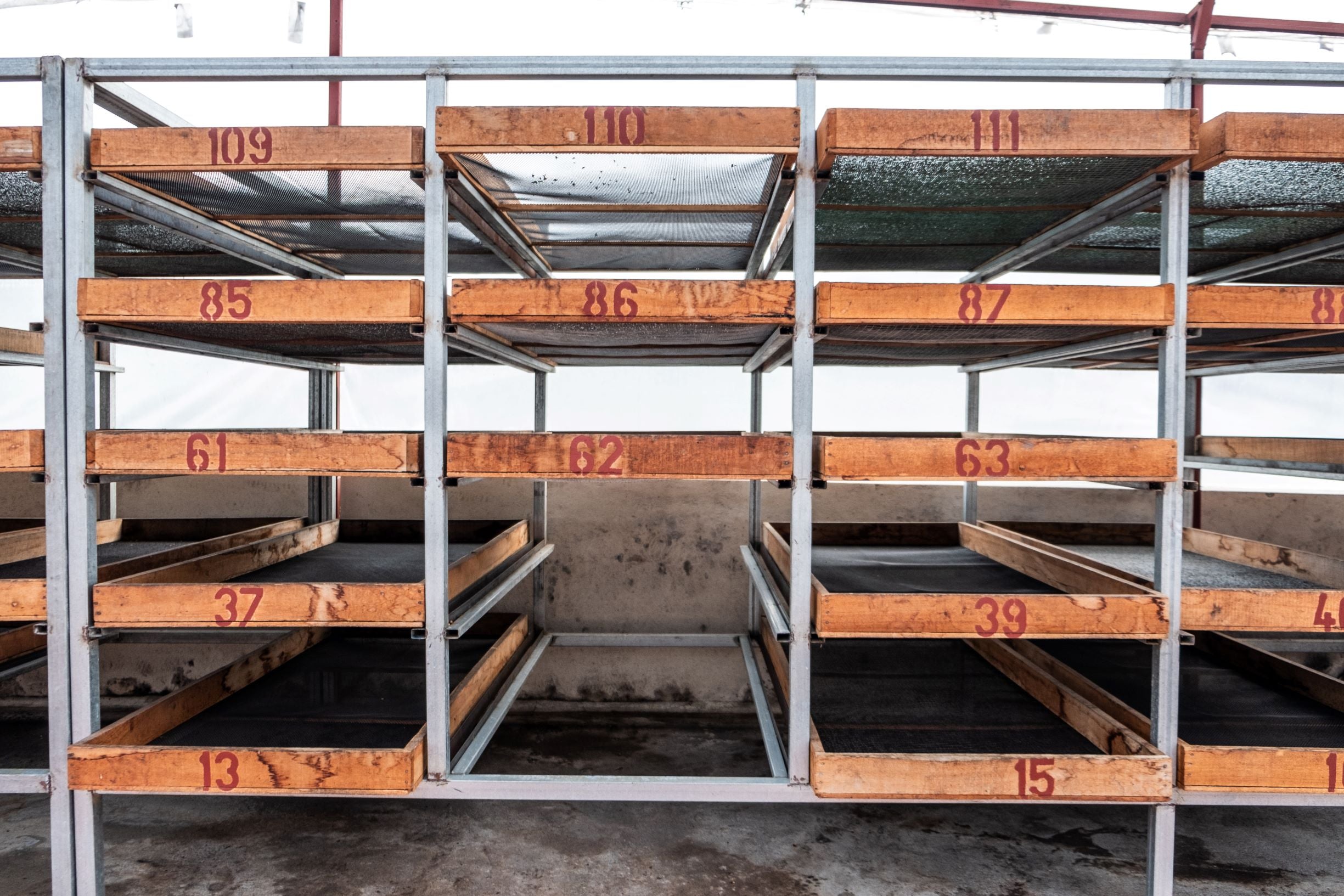 Consequently, the coffee is first dried on a ceramic floor to halt the fermentation and finally finishes drying on raised beds - all within the climate controlled green house.