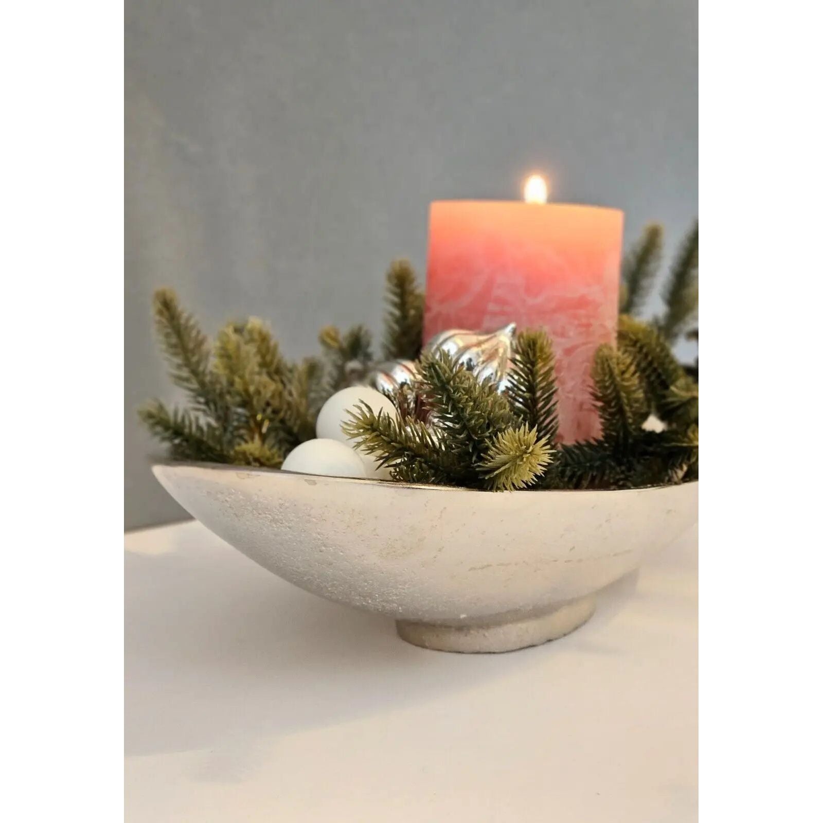 Schöne Dekoschale aus massivem Metall in silber. Vielseitig einsetzbar: als Kerzenschale, für saisonale Dekoration, für die Tischdeko oder im Flur... Lesen Sie mehr