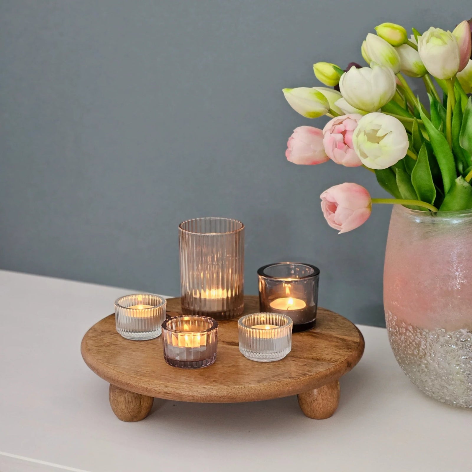 Dank der drei kleinen Standfüße steht der Dekoteller sicher und erhöht auf jeder Oberfläche. Verwenden Sie ihn als Dekoplatte für Kerzen, Blumenarrangements oder saisonale Accessoires – Ihrer Kreativität sind keine Grenzen gesetzt.