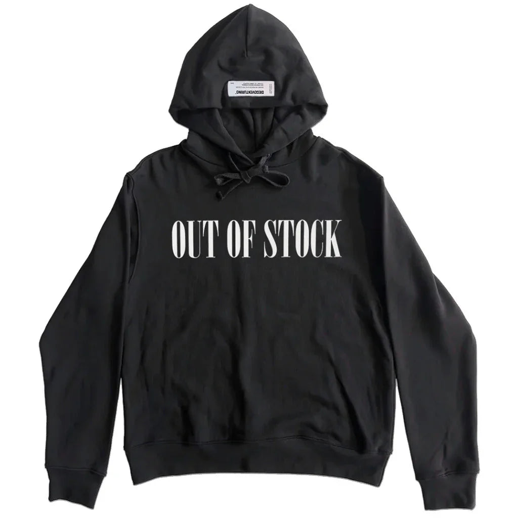 Diego venturino, black sweatshirt 100% cotton made in italy, with hood, drawstring and out of stock print. Lesen Sie mehr