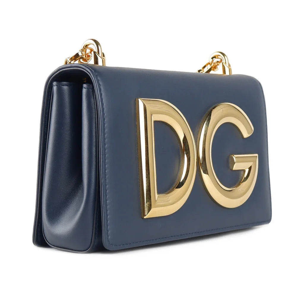 Dolce & Gabbana calfskin shoulder bag with magnetic button closure, gold-tone metal logo on the front, chain shoulder strapDimensions: 21.5x14x7... Lesen Sie mehr