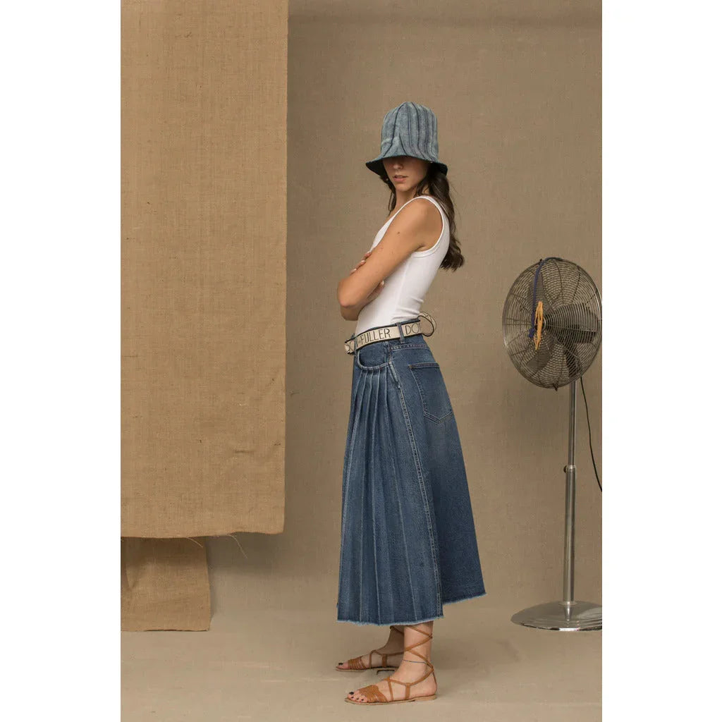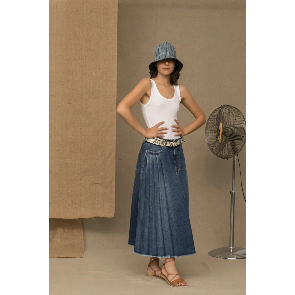 Don The Fuller pleated blue denim skirt with zip and button closure, two front and two back pockets, brand logo... Lesen Sie mehr