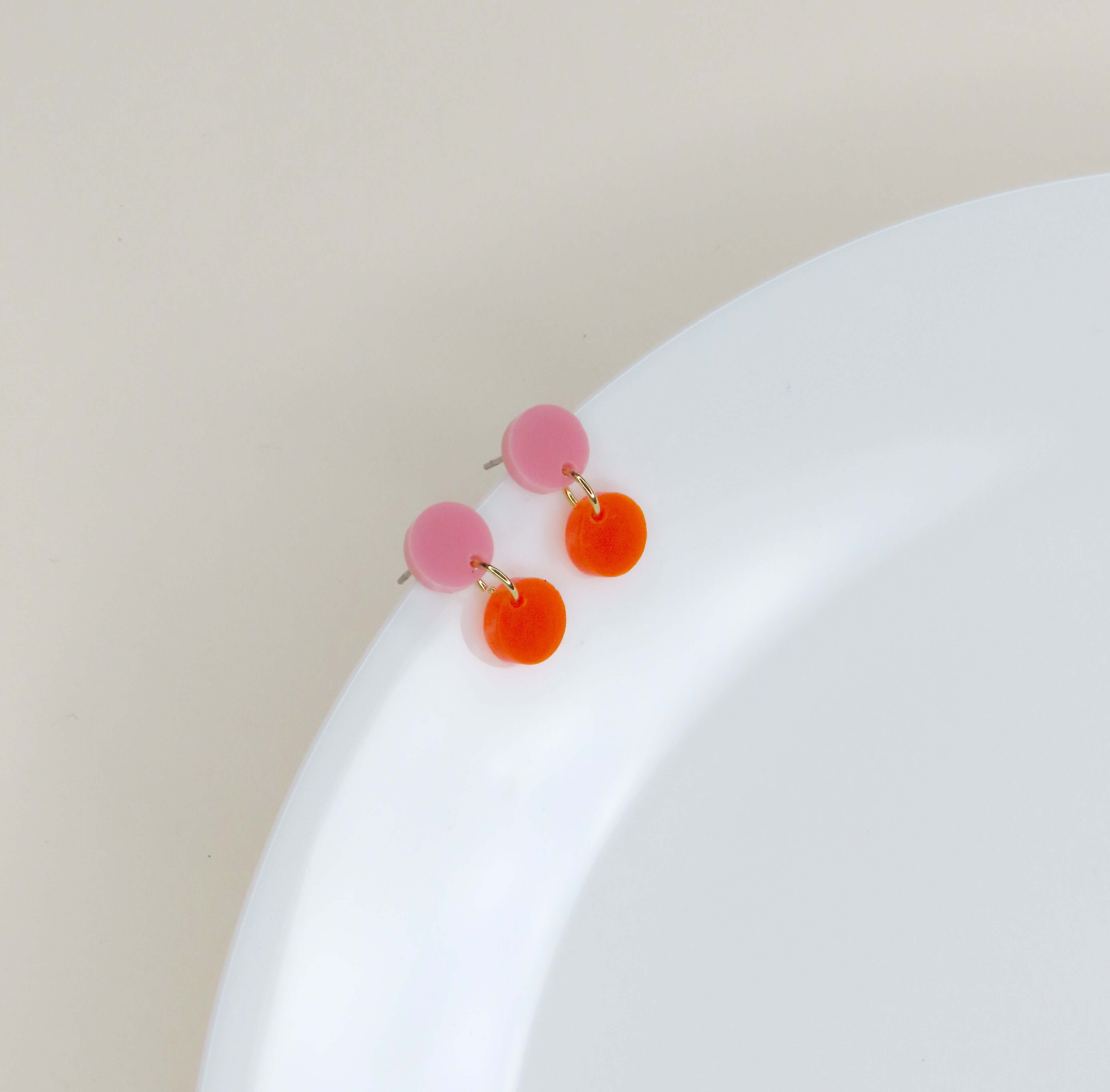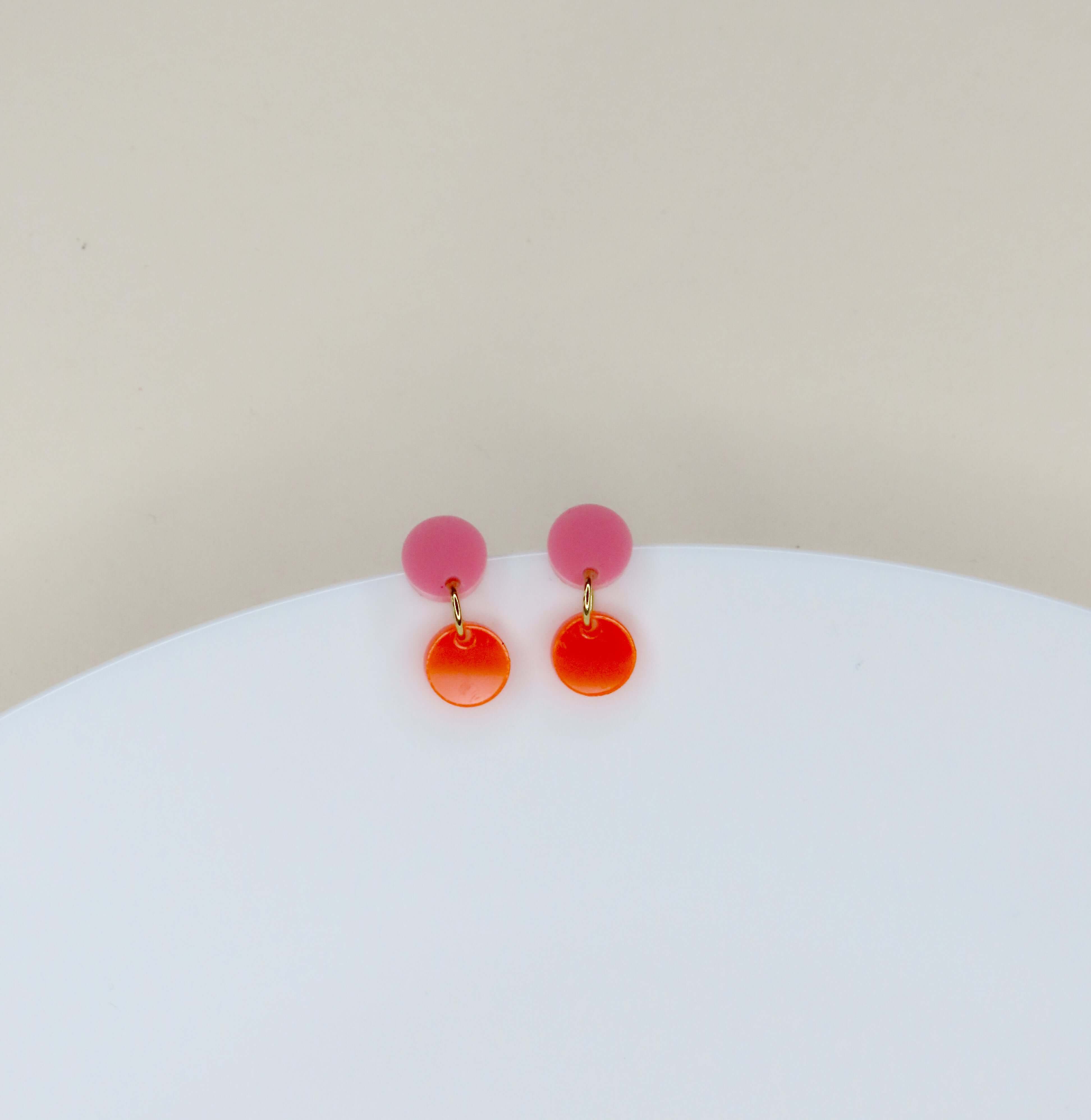 Maße: 2 cm lang x 1 cm breit Farben: Rosa, Neonorange Material: Acryl, Edelstahl (hautfreundlich) Zwei runde Acryl-Elemente, verbunden durch... Lesen Sie mehr