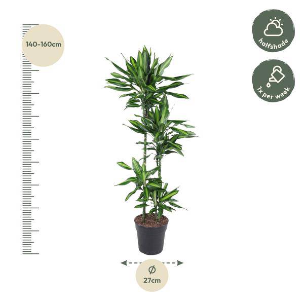 Die Dracaena Cintho ist eine elegante Zimmerpflanze, die durch ihr markantes Blattmuster und ihre tropische Ausstrahlung überzeugt. Mit einer Höhe von ca. 150cm und einem Topfdurchmesser von Ø27cm bringt sie frisches Grün in Ihre Wohn- oder Arbeitsräume und wirkt dabei modern und dekorativ.