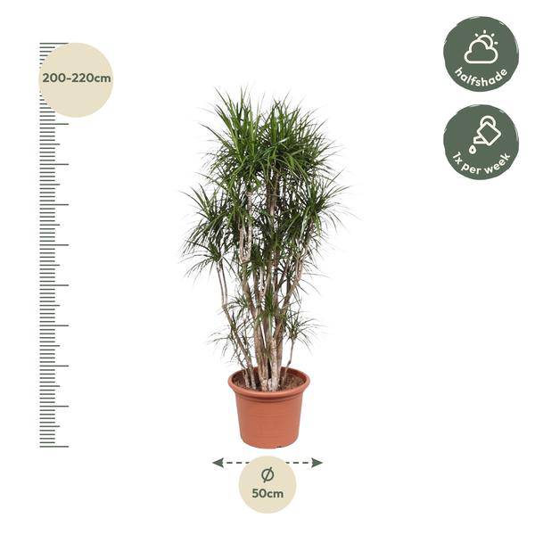 Die Dracaena Marginata, auch bekannt als Drachenbaum, gehört zu den beliebtesten großen Zimmerpflanzen für moderne Wohn- und Arbeitsbereiche. Mit einer Höhe von ca. 220cm und einem Topfdurchmesser von 40cm ist sie eine imposante Grünpflanze, die sofort für ein exotisches Ambiente sorgt.