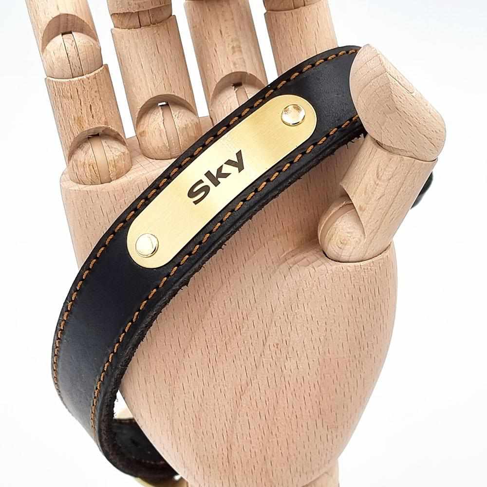 Edles Hundehalsband aus Rindsleder mit Gravur Name und Telefon