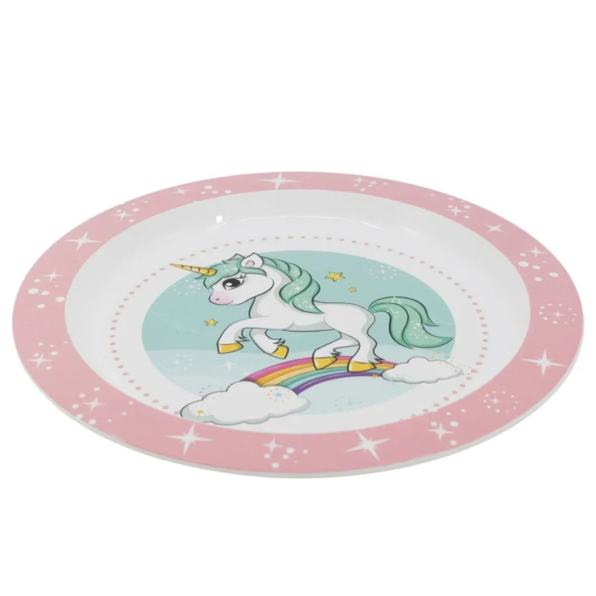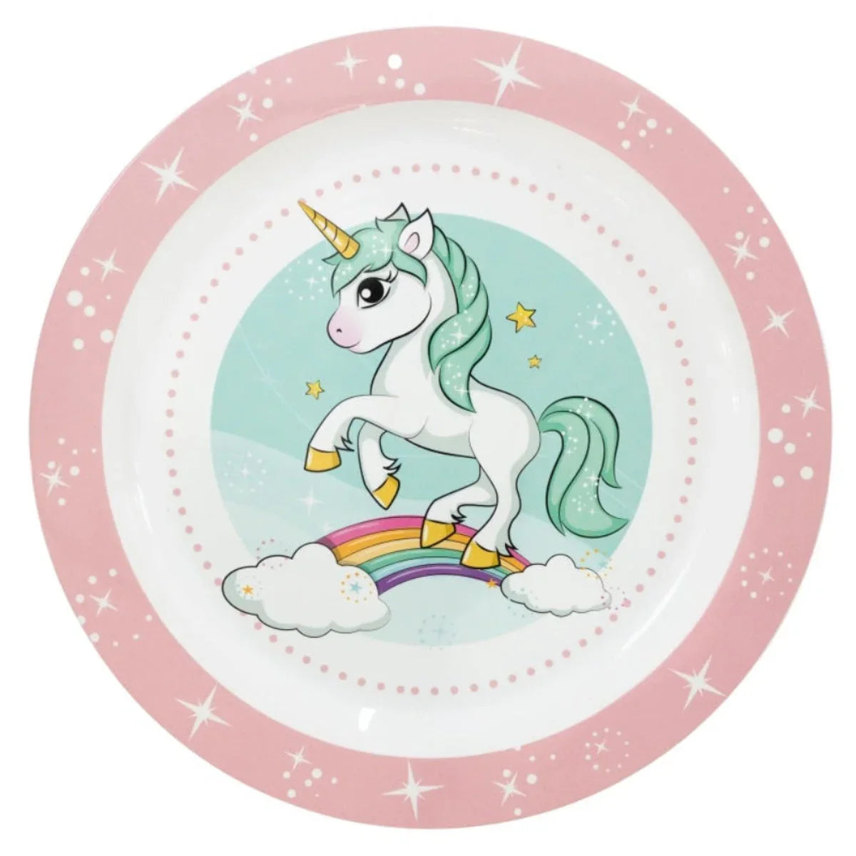 Einhorn Plastik-Teller Kunststoffset für Kinder - Mikrowelle geeignet