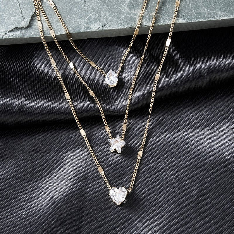 Elegante 3-lagige Halskette – Goldfarben mit Kristall-Anhängern (18 Zoll)