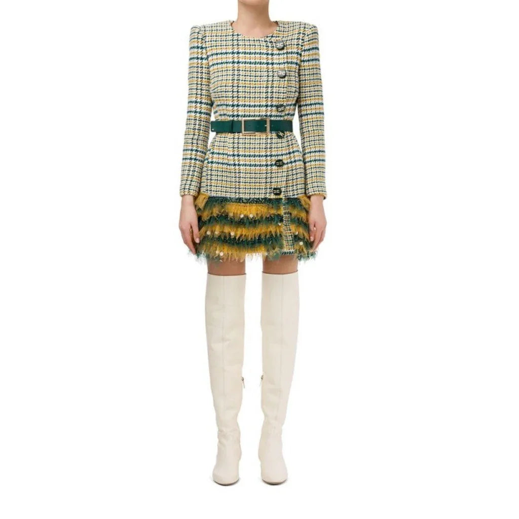 Elisabetta Franchi dress, green, white and yellow color with tartan texture, front buttons closure, ecoleather belt with metal buckle. Made... Lesen Sie mehr