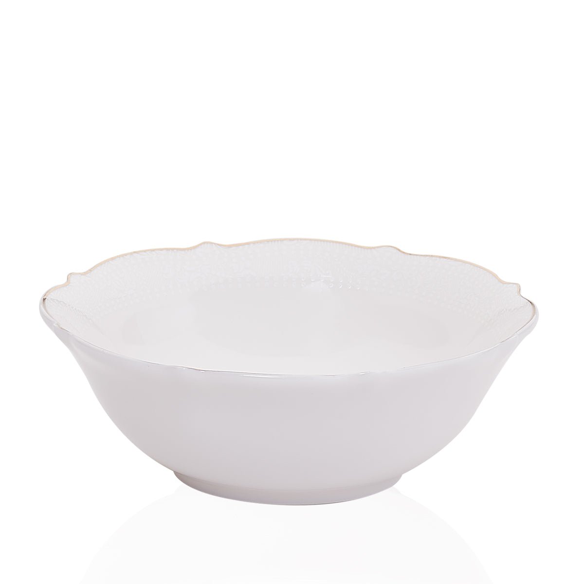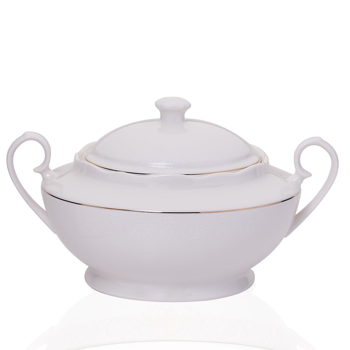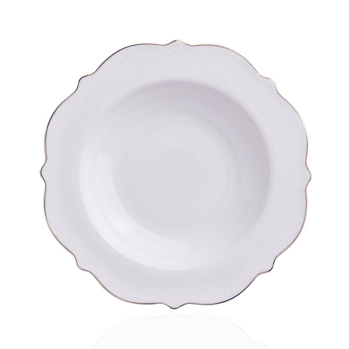 Die leicht geschwungene Formgebung mit sanften Rundungen und wellenartigen Konturen wird durch einen dezenten Gold- oder Platindekor-Rand veredelt, der jedem Teil einen edlen Glanz verleiht, ohne dabei aufdringlich zu wirken.
