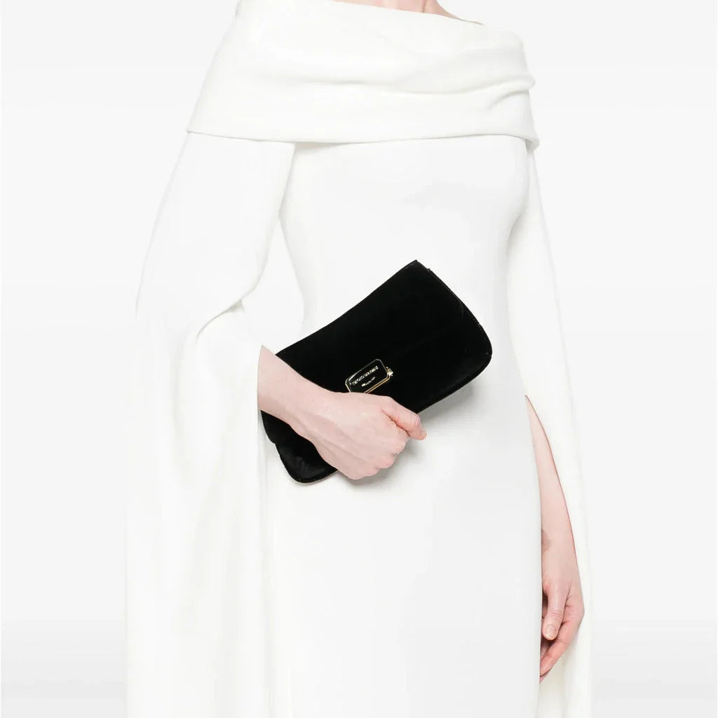 Emporio Armani velvet clutch bag, flap closure with metal clasp, handle on the back, internal pocket, metal chain shoulder strap... Lesen Sie mehr